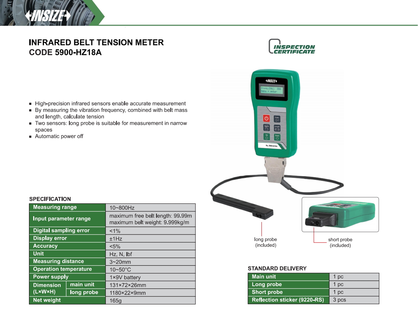 Two sensors: long probe is suitable for measurement in narrow spaces