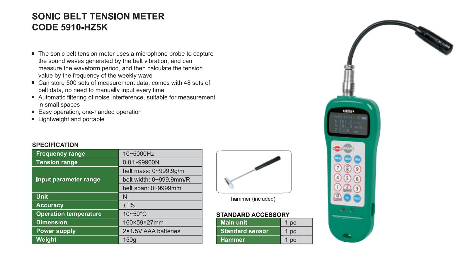 The sonic belt tension meter uses a microphone probe to capture the sound waves generated by the belt vibration, and can measure the waveform period, and then calculate the tension value by the frequency of the weekly wave