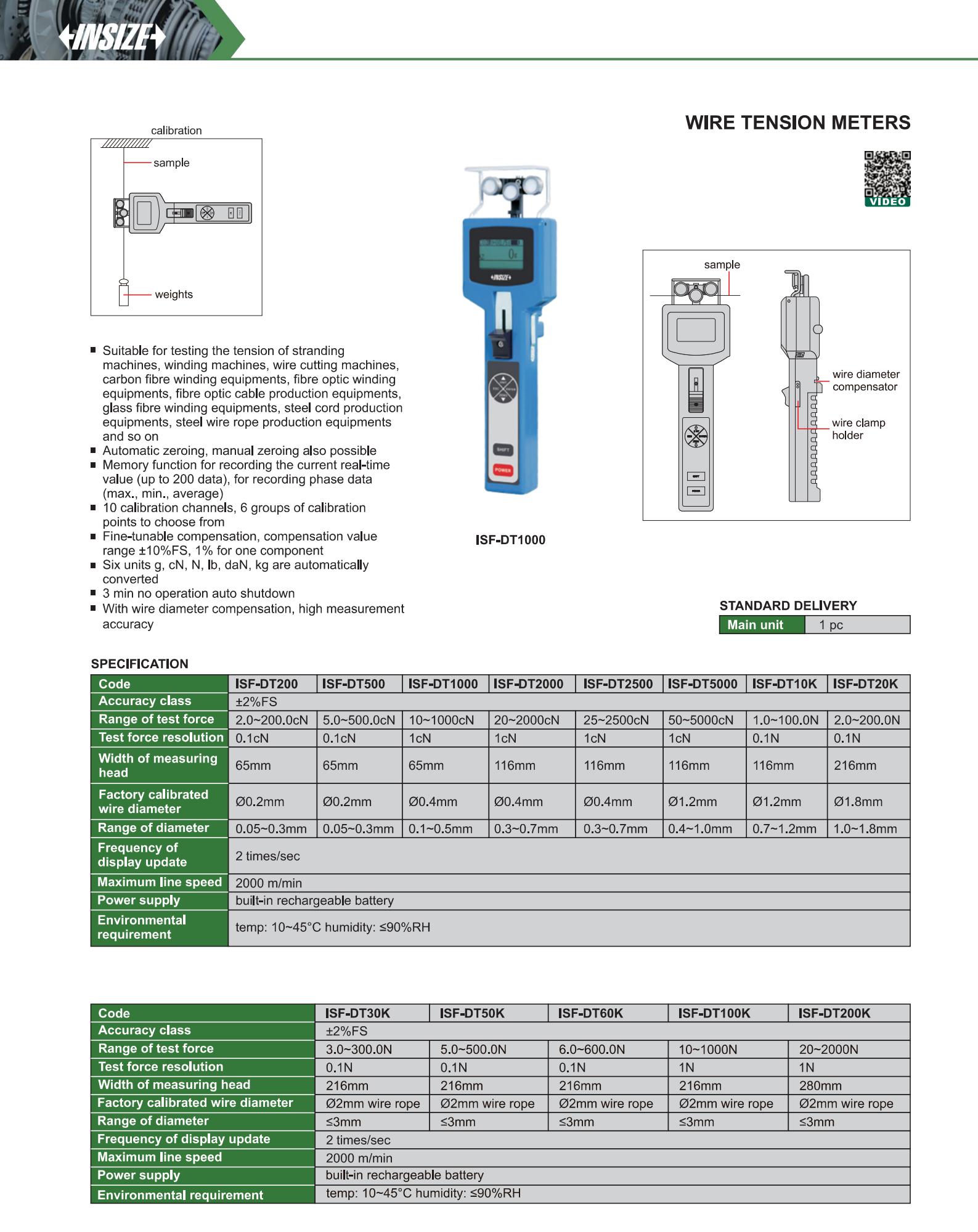 Suitable for testing the tension of stranding machines, winding machines, wire cutting machines, carbon fibre winding equipments, fibre optic winding equipments, fibre optic cable production equipments, glass fibre winding equipments, steel cord production equipments, steel wire rope production equipments and so on