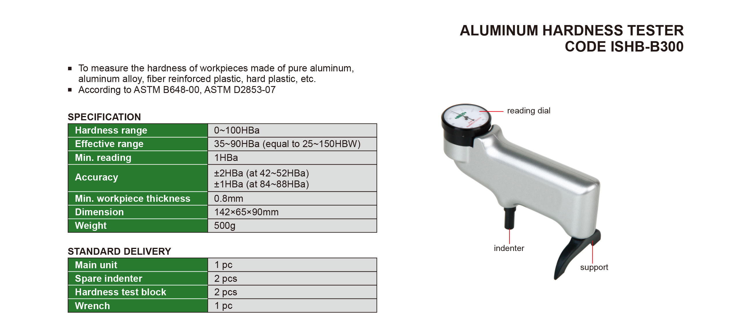 To measure the hardness of workpieces made of pure aluminum, aluminum alloy, fiber reinforced plastic, hard plastic, etc.