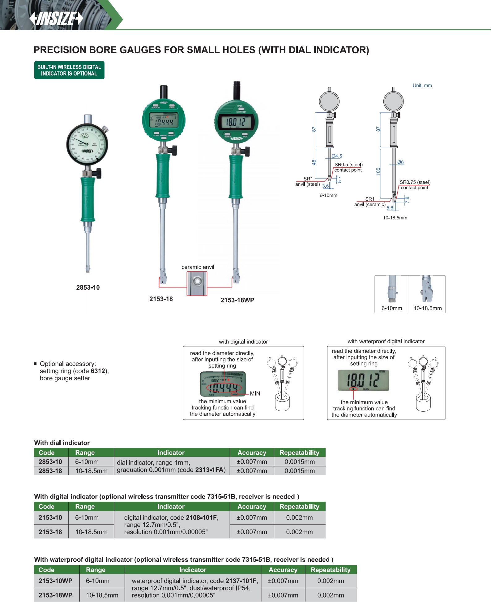 | 2153-18WP | 10-18.5mm | ±0.007mm | 0.002mm |