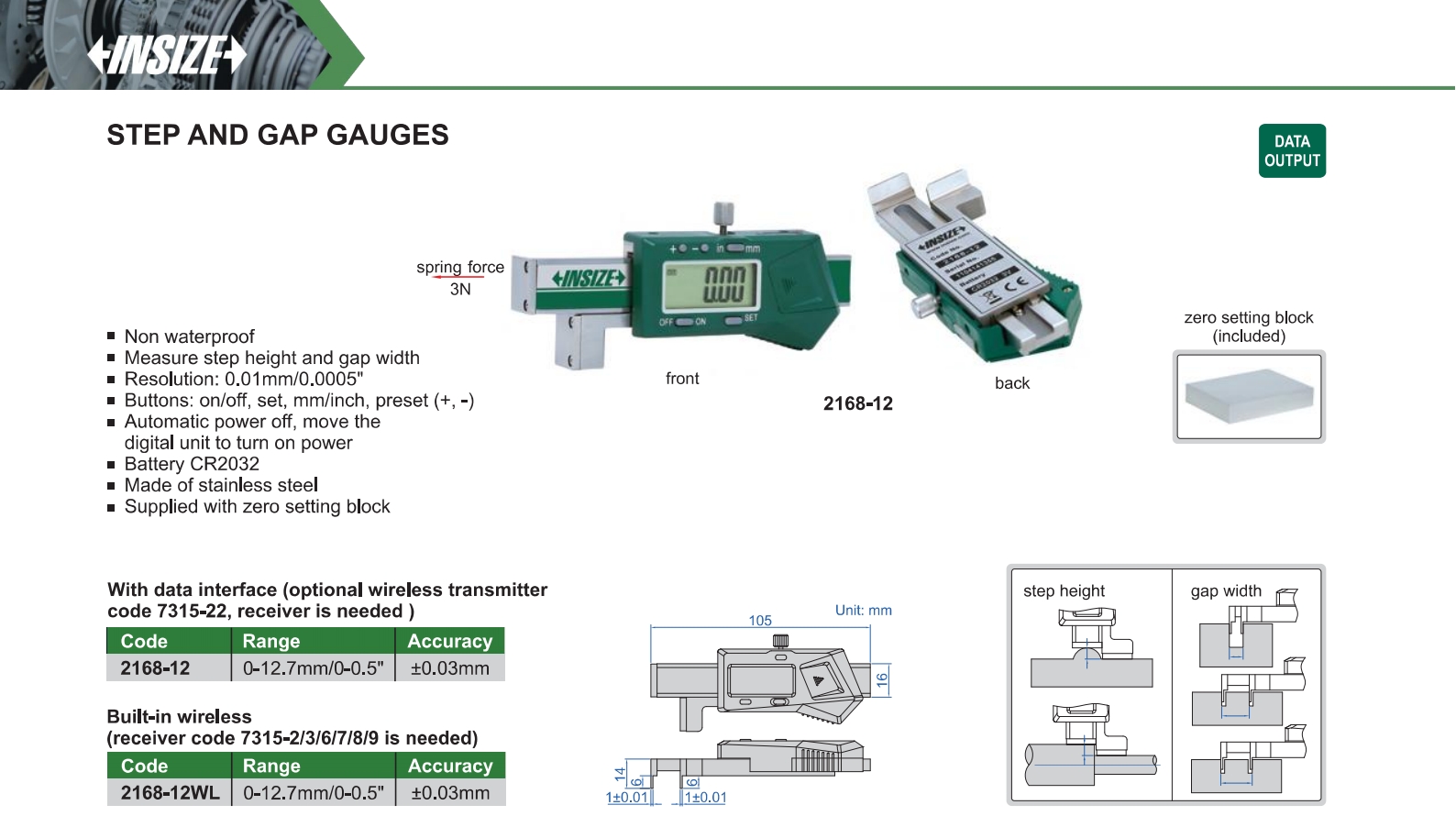 | 2168-12WL | 0-12.7mm/0-0.5" | ±0.03mm | 0.01mm/0.0005" |
