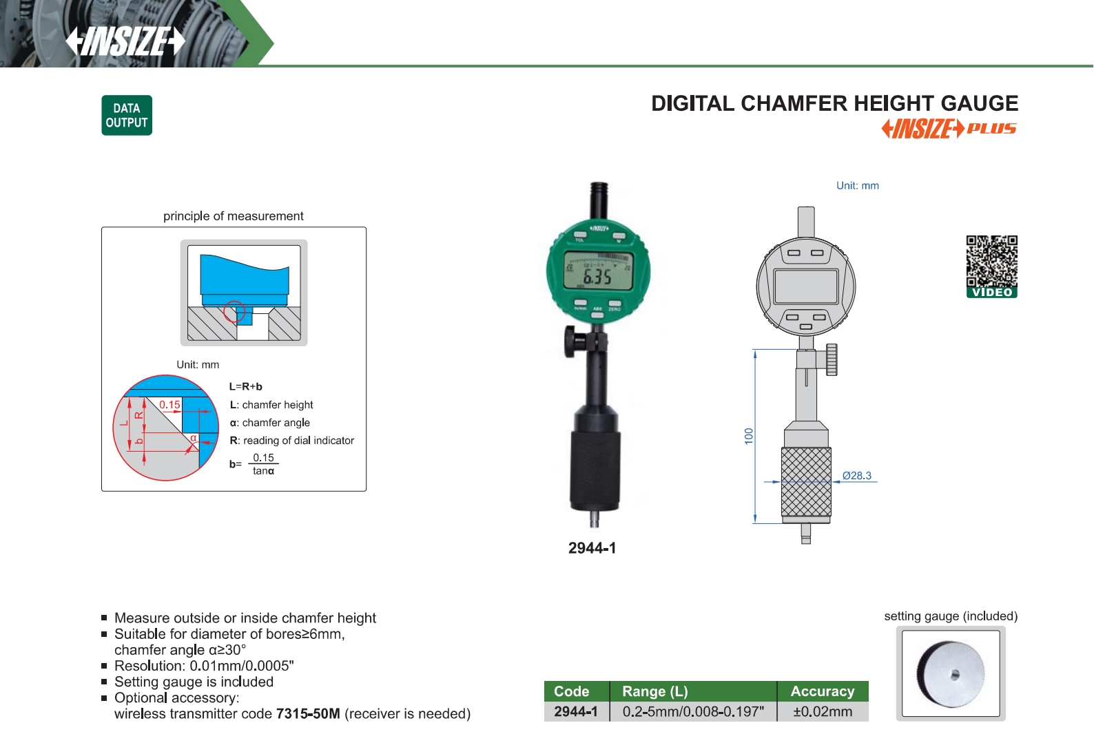 | 2944-1 | 0.2-5mm/0.008-0.197" | ±0.02mm | 0.01mm/0.0005" |
