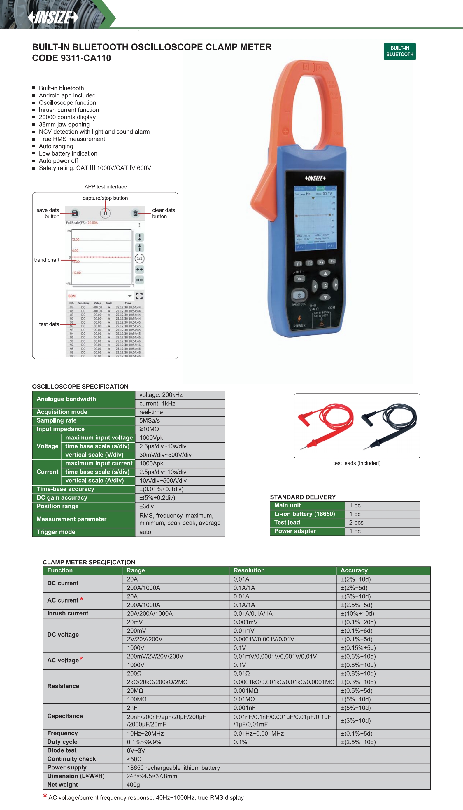 | 9311 | no | 4 ½ | 20A/200A/1000A | 20A/200A/1000A | 20mV/200mV/2V/20V/200V/1000V | 200mV/2V/20V/200V/1000V | yes |