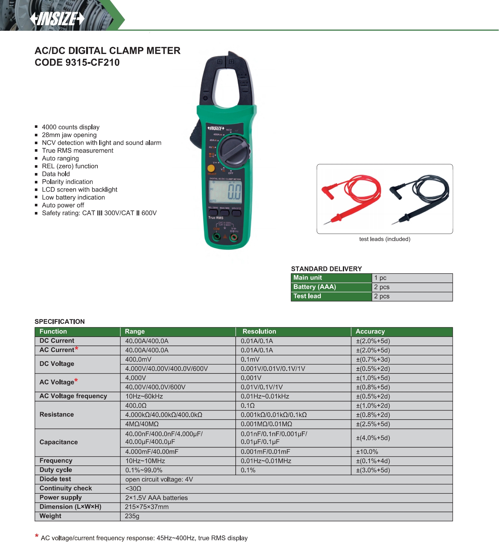Safety rating: CAT III 300V/CAT II 600V