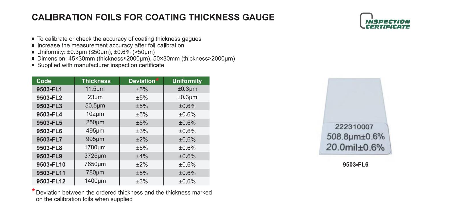 | 9503-FL3 | 50.5μm | ±0.6% |