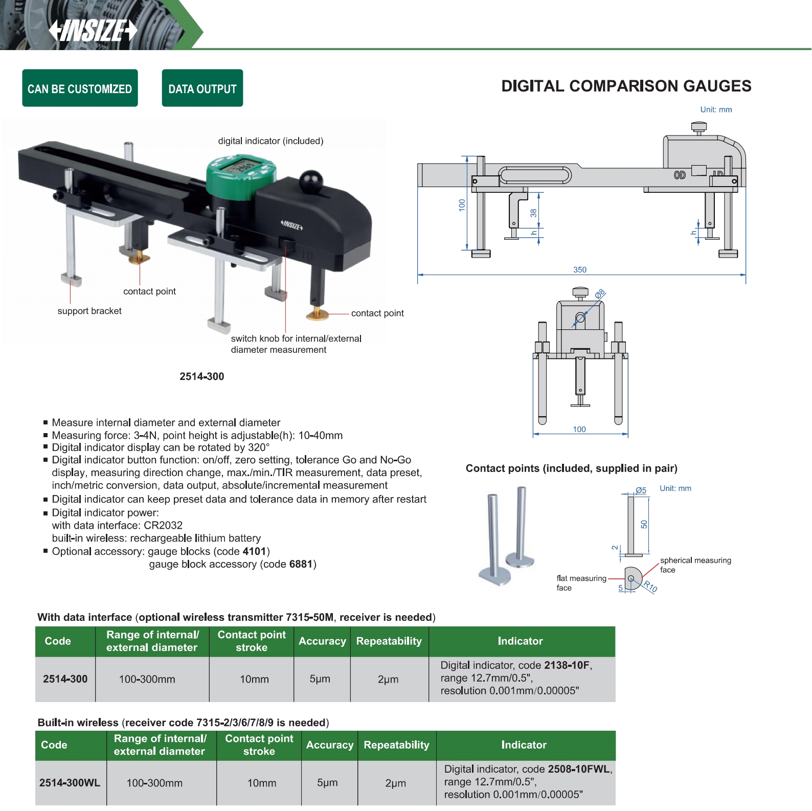 Digital indicator power: with data interface: CR2032 built-in wireless: rechargeable lithium battery