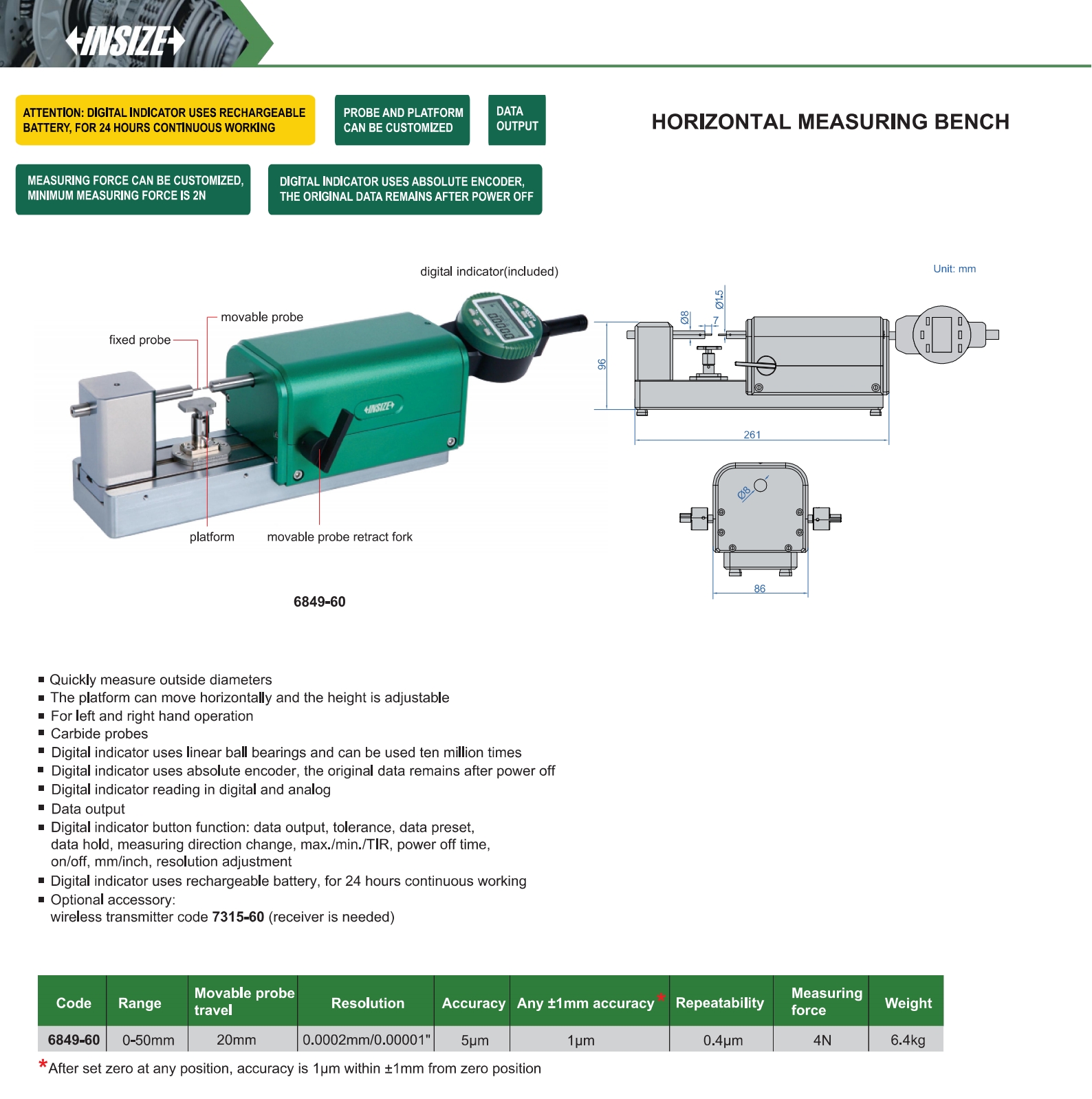 | 6849-60 | 5μm | 0.0002mm/0.00001" | 0.4μm | 0-50mm |