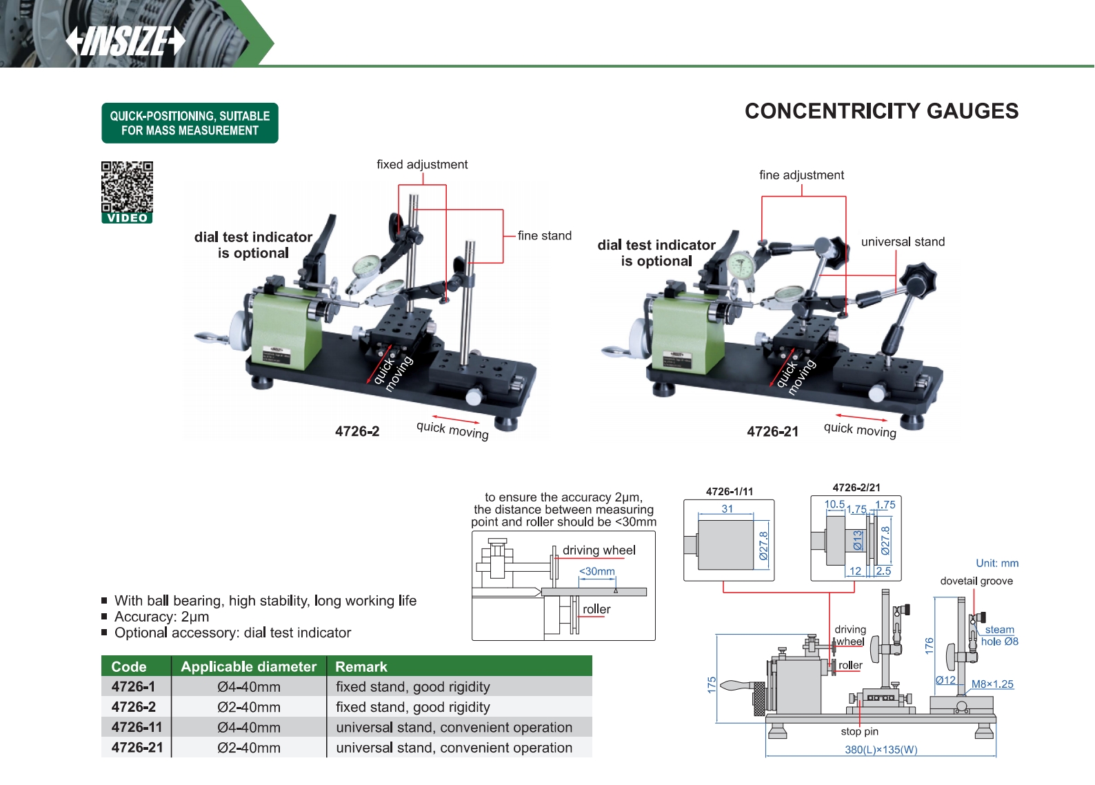 | 4726-11 | Ø4-40mm | 2μm | universal stand, convenient operation |