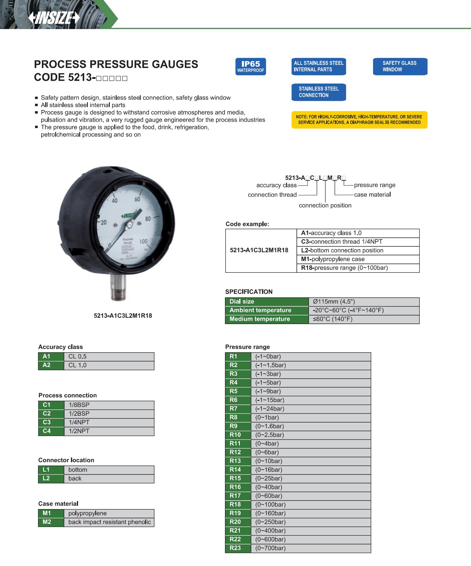 Process gauge is designed to withstand corrosive atmospheres and media, pulsation and vibration, a very rugged gauge engineered for the process industries