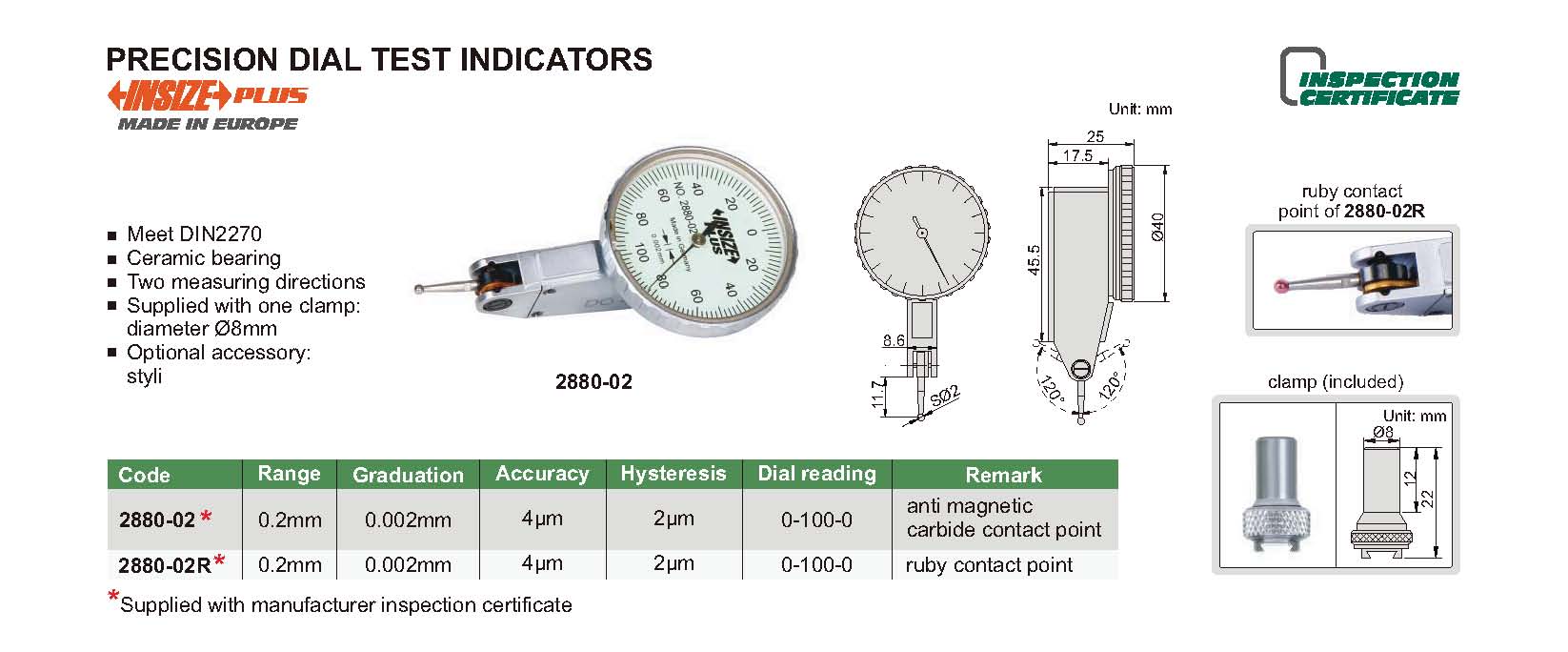 Supplied with one clamp: diameter Ø8mm