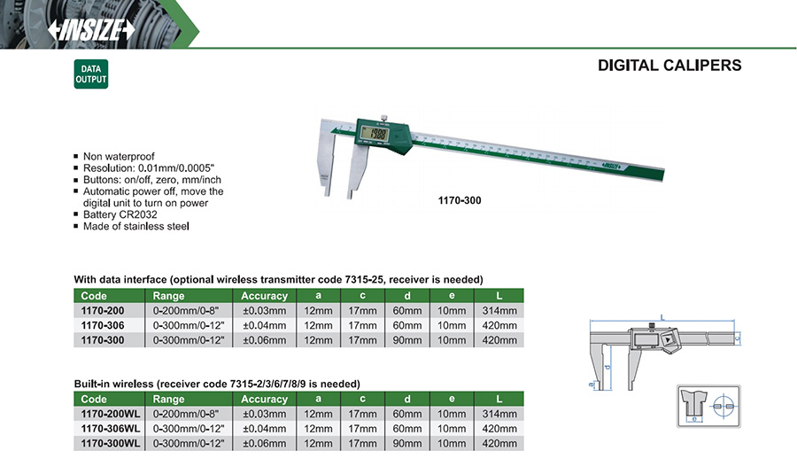 1170-300WL 0-300mm/0-12" ±0.06mm 0.01mm/0.0005" built-in wireless
