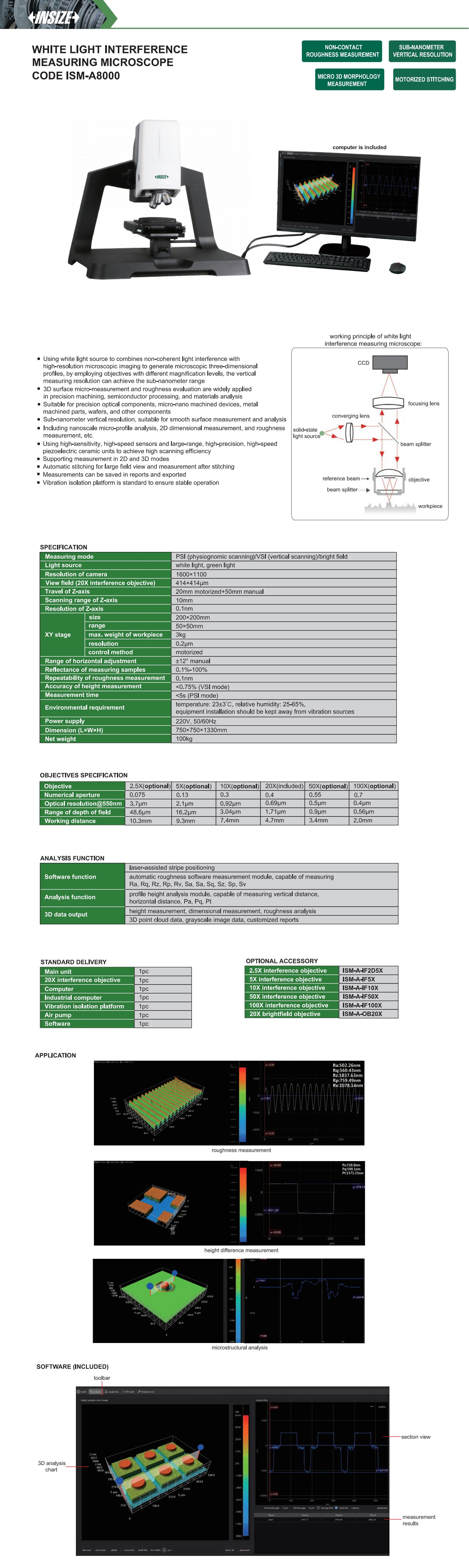 | ISM-A8000 | white light interference measuring microscope | 414μm×414μm (20X interference objective) | 1600×1100 |