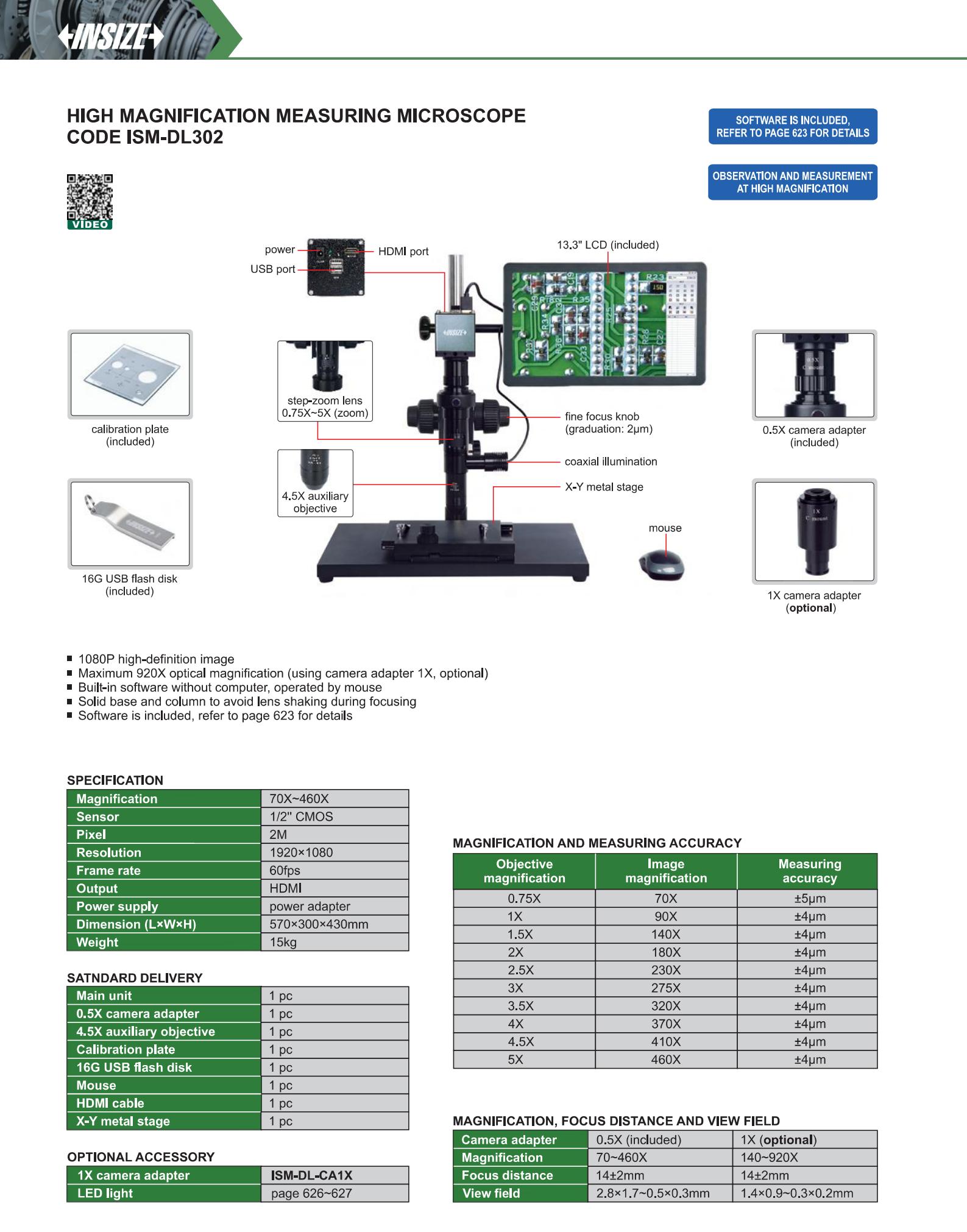 | ISM-DL302 | digital measuring microscopes | 70X~460X | 2.8×1.7~0.5×0.3mm | 2M |