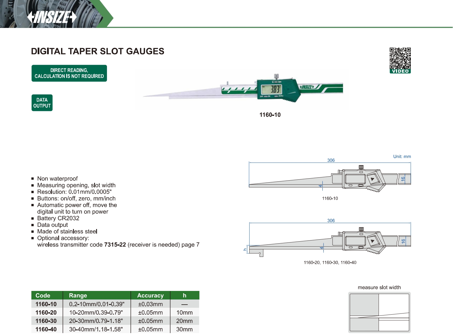 | 1160-10 | 0.2-10mm/0.01-0.39" | ±0.03mm |