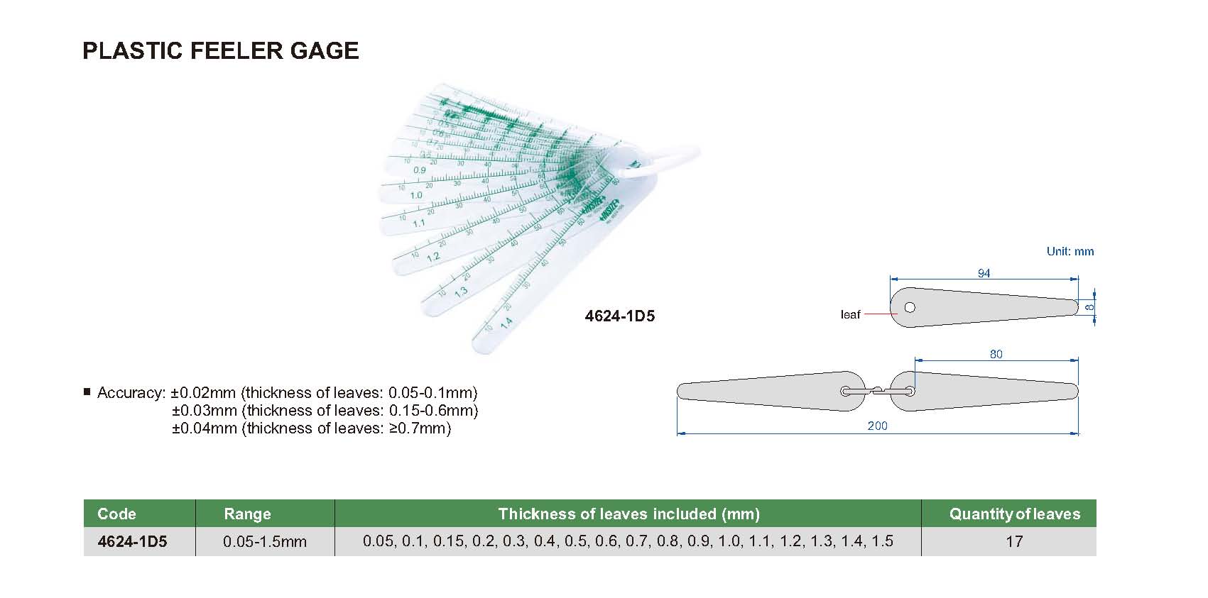 4624-1D5 0.05-1.5mm ±0.02mm, ±0.03mm, ±0.04mm