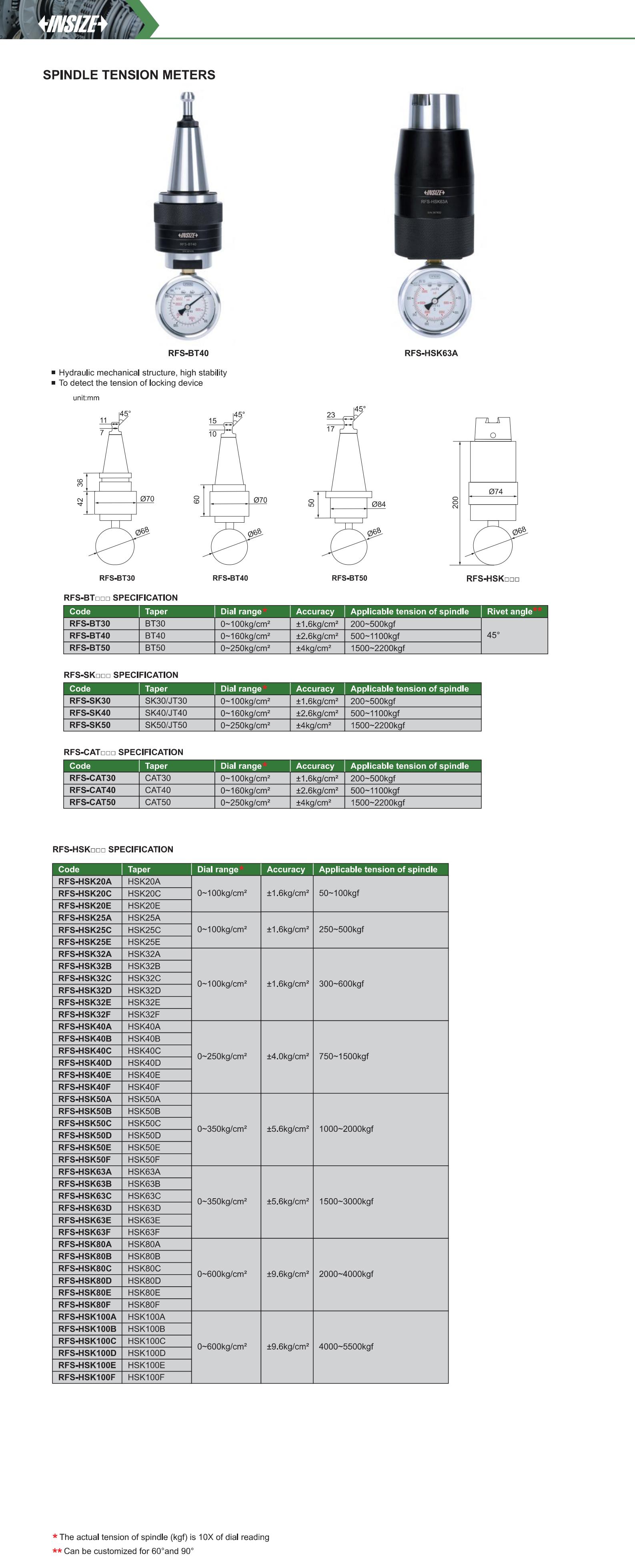 | RFS-HSK20A | spindle tension | 0~100kg/cm² | 50~100kgf |