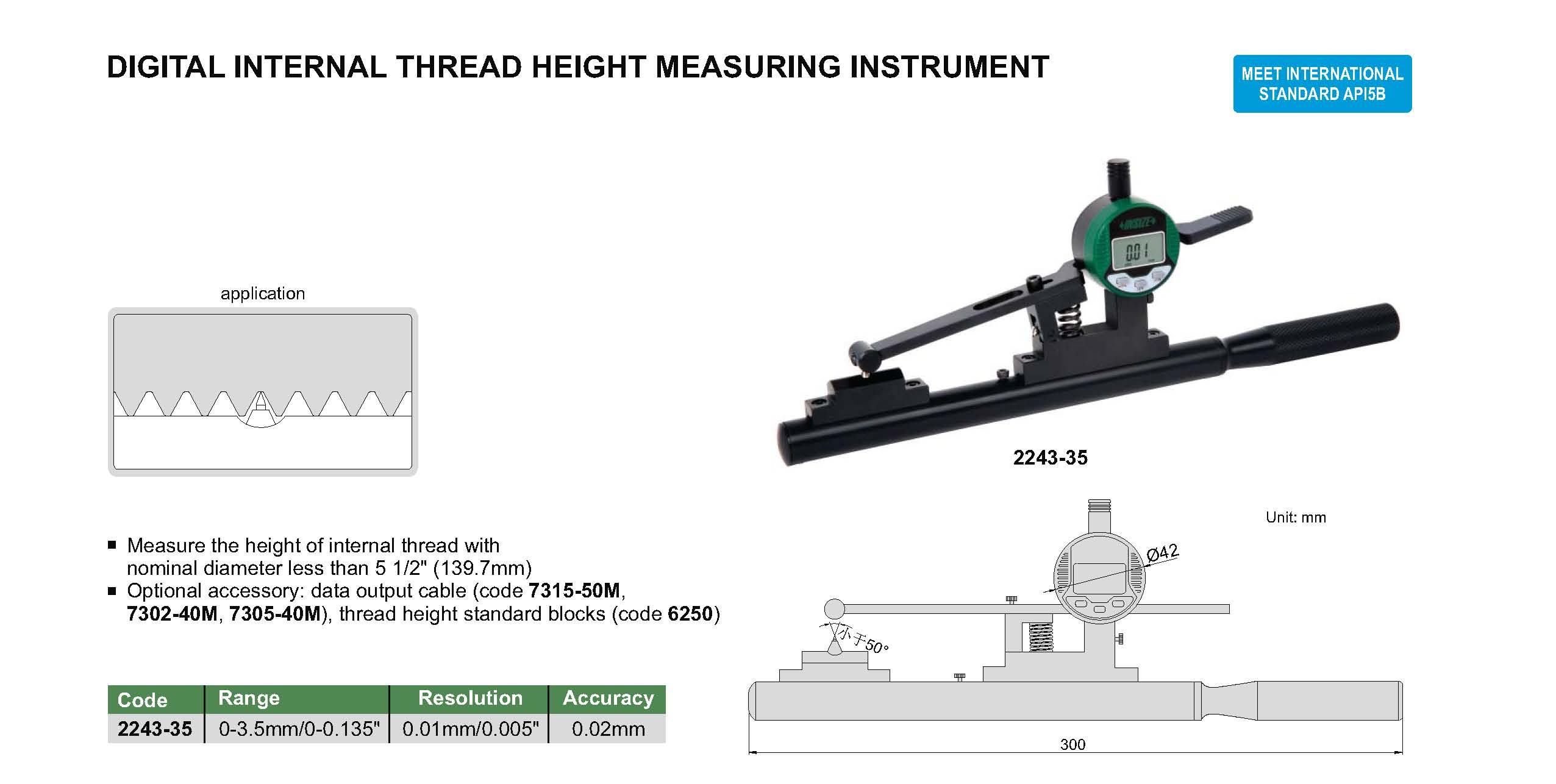 Measure the height of internal thread with nominal diameter less than 5 1/2" (139.7mm)