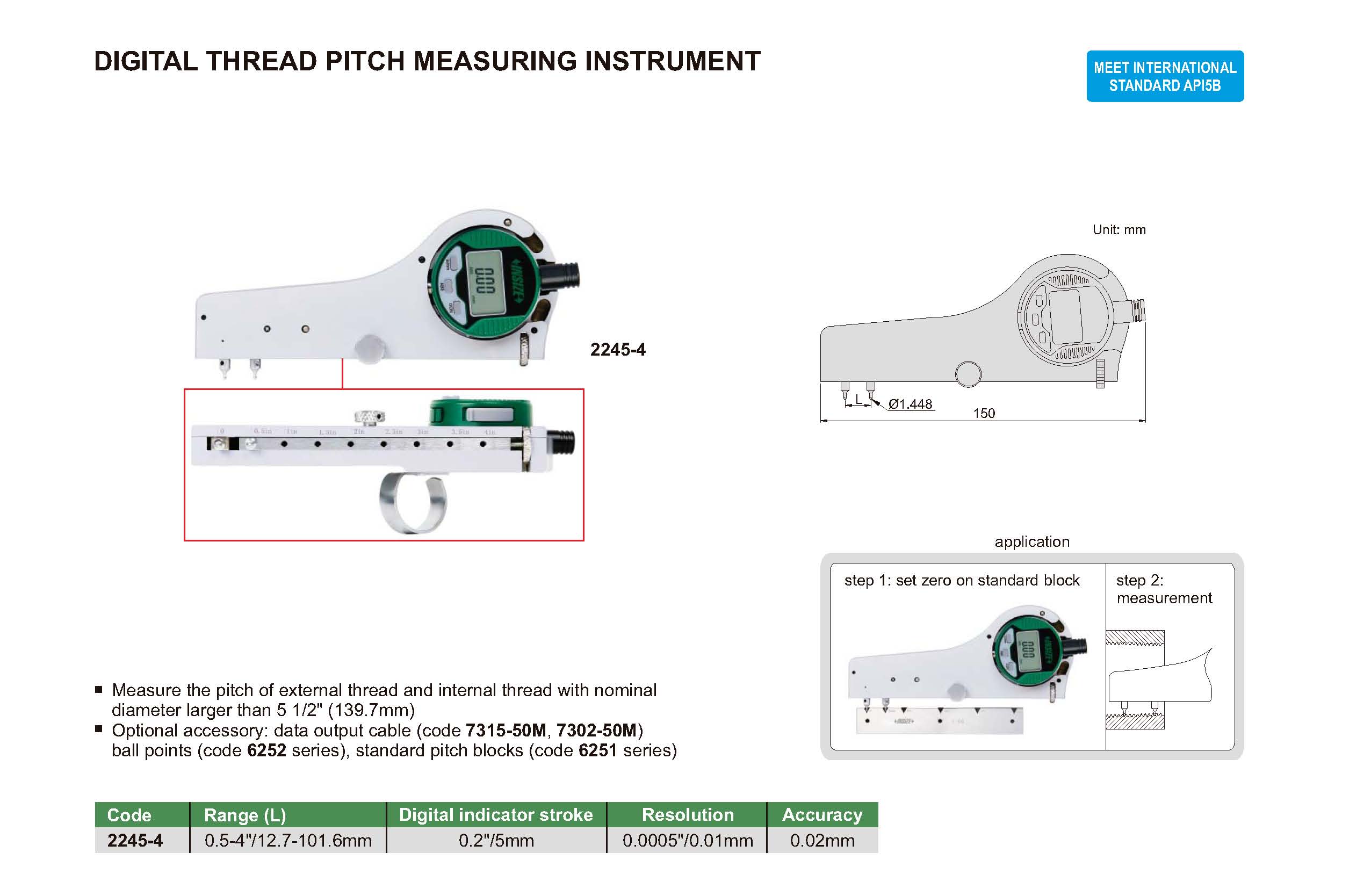 Measure the pitch of external thread and internal thread with nominal diameter larger than 5 1/2" (139.7mm)