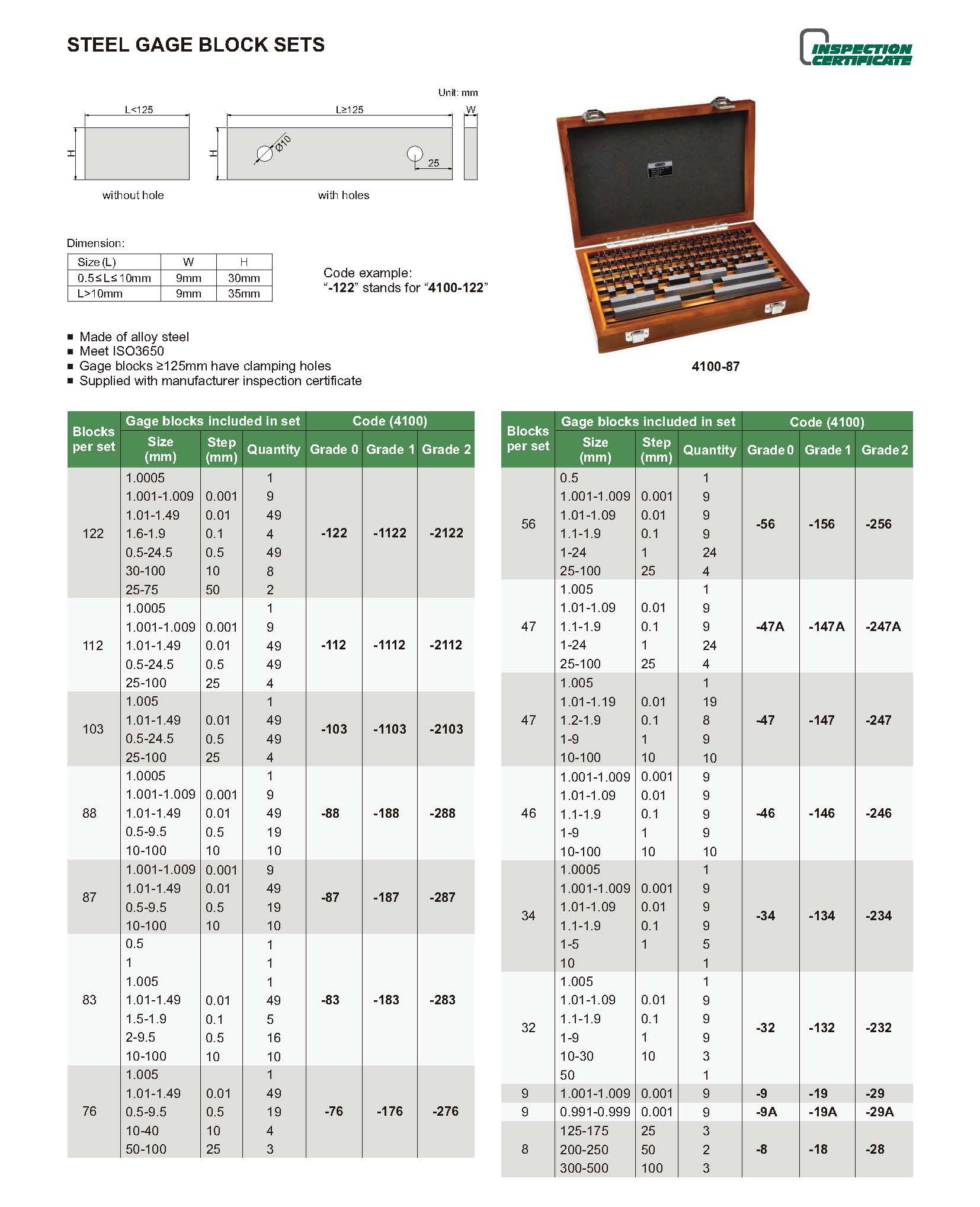Gauge blocks ≥125mm have clamping holes