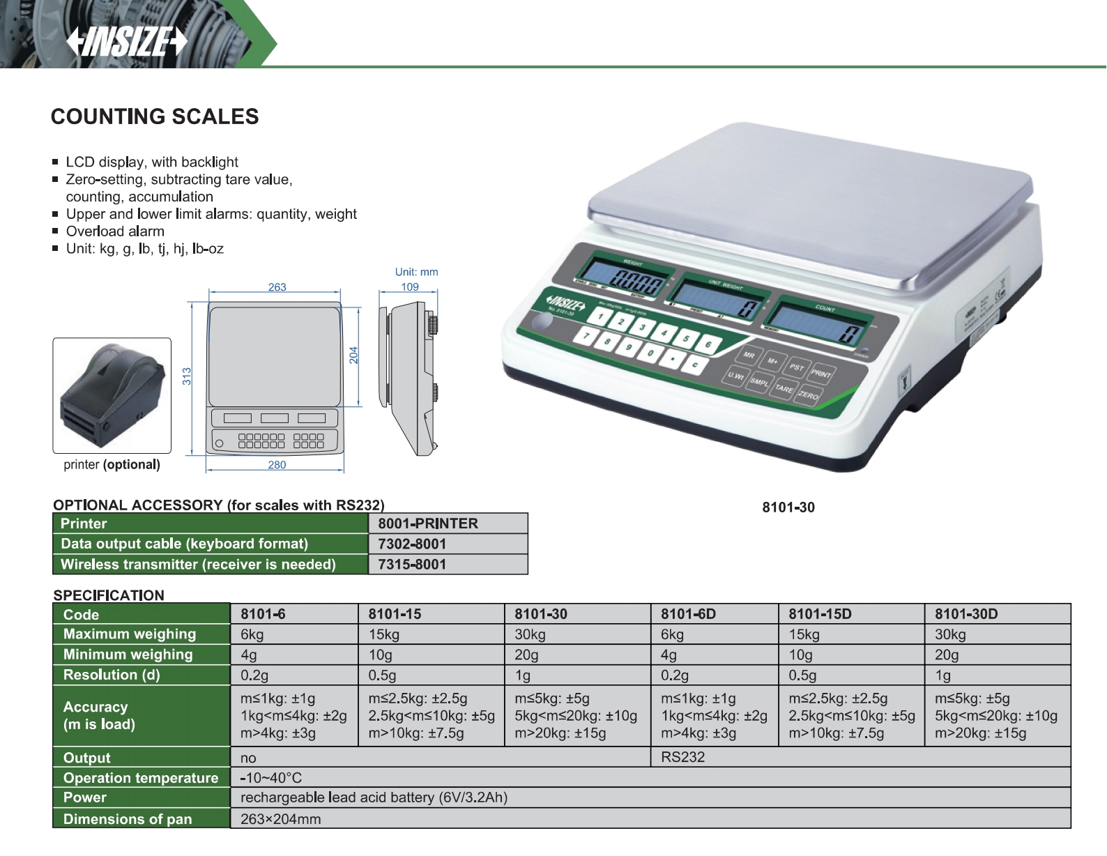 | 8101-30D | 1g | 30kg | 263×204mm |