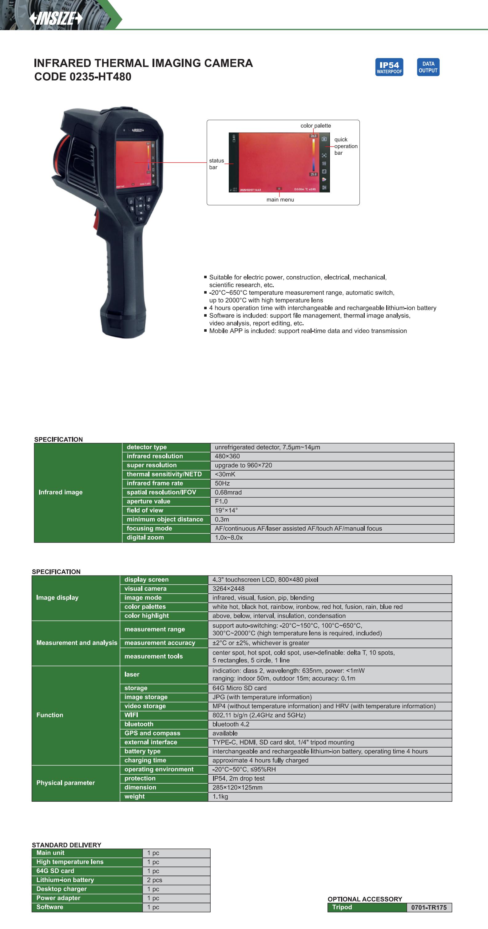 | 0235-HT480 | support auto-switching: -20°C~150°C, 100°C~650°C, 300°C~2000°C (high temperature lens is required, included) | 480×360 | AF/continuous AF/laser assisted AF/touch AF/manual focus | yes |