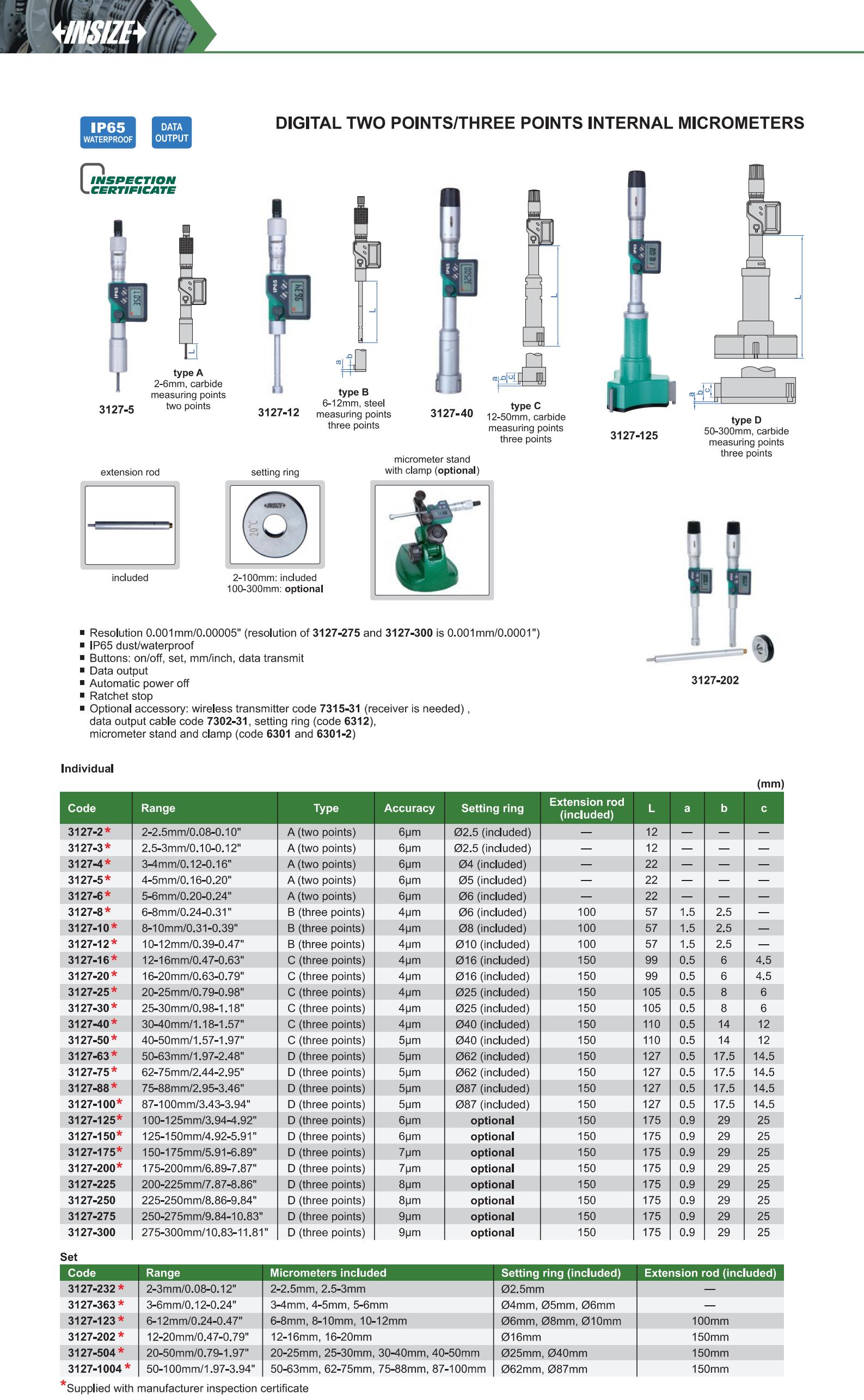 | 3127-63 | 50-63mm/1.97-2.48" | 5μm | 0.001mm/0.00005" |