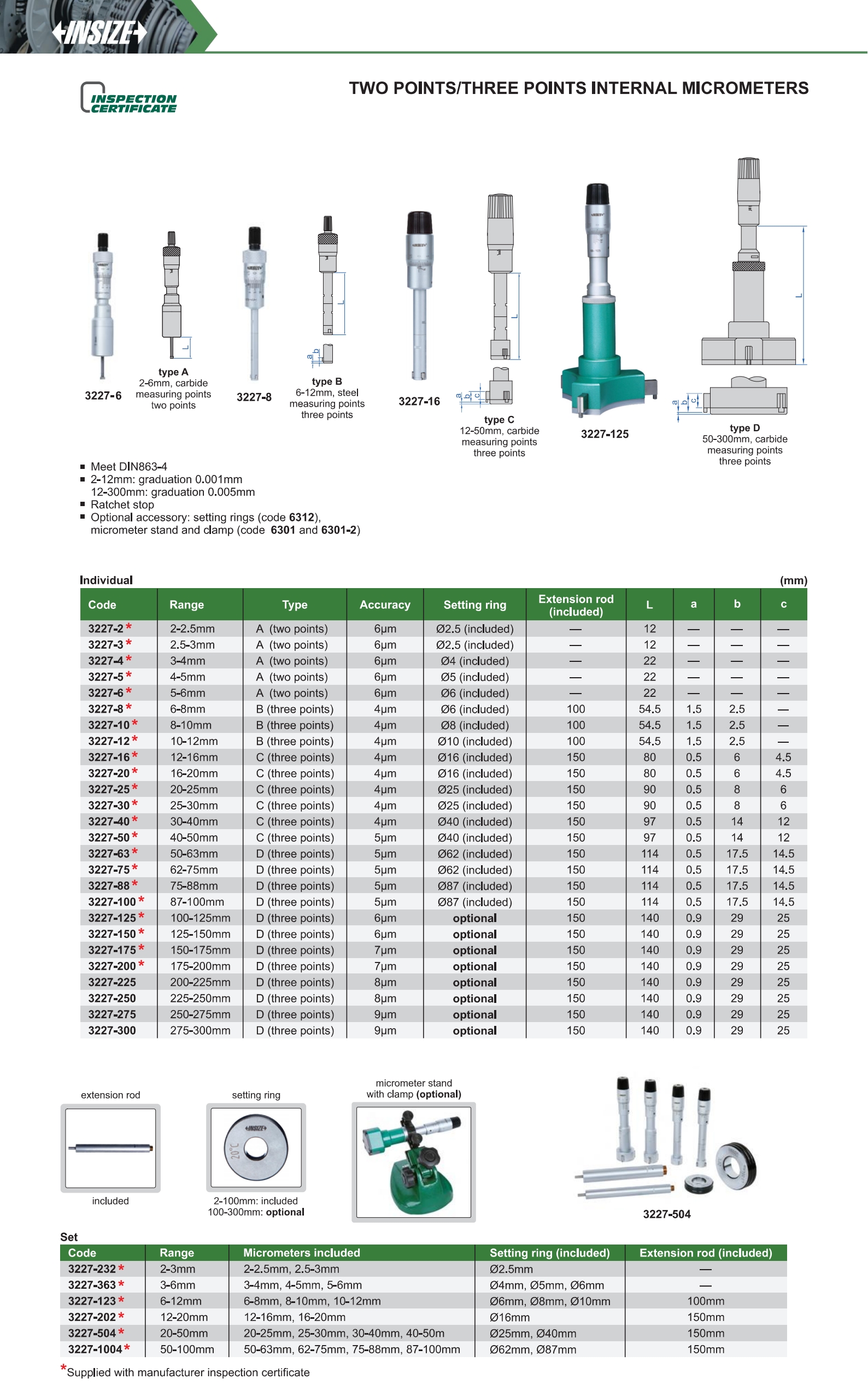 | 3227-63 | 50-63mm | 5μm | 0.005mm |
