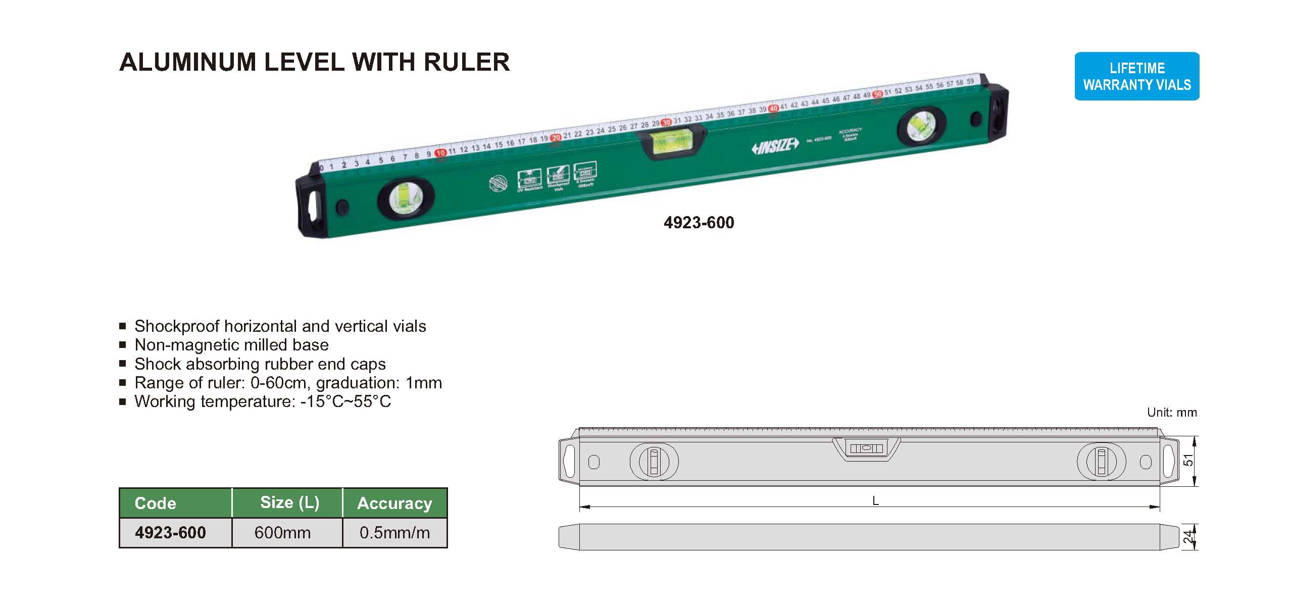 | 4923-600 | 0.5mm/m | 600mm | -15°C~55°C |