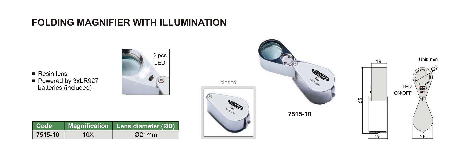 Powered by 3xLR927 batteries (included)