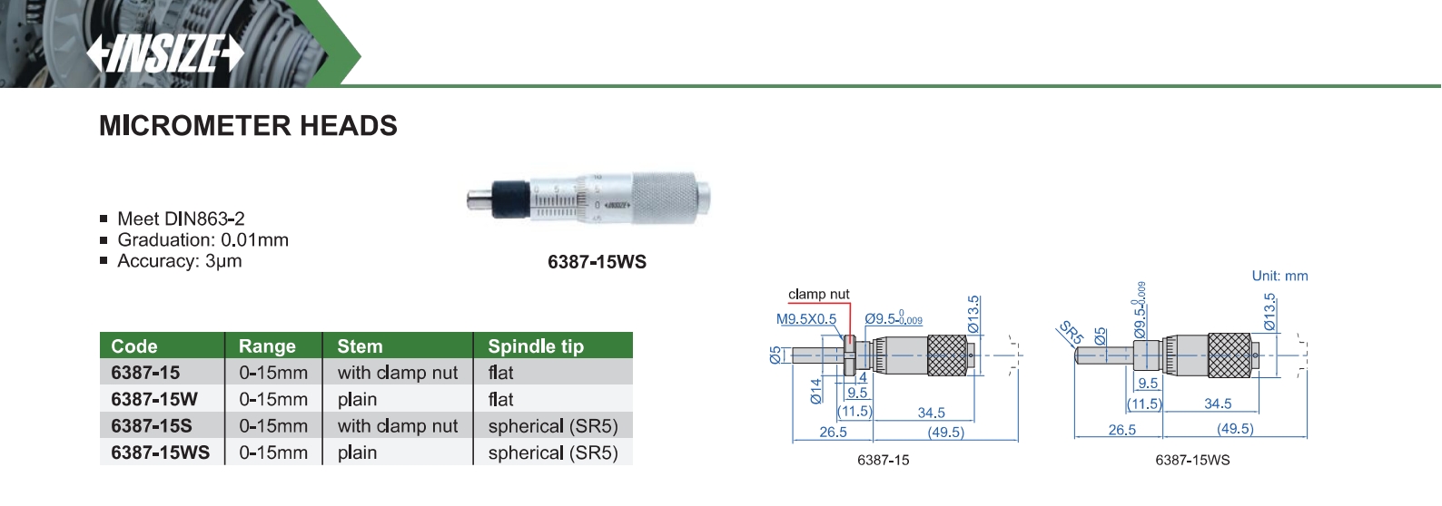 | 6387-15 | 0-15mm | 3μm | 0.01mm | with clamp nut | flat |