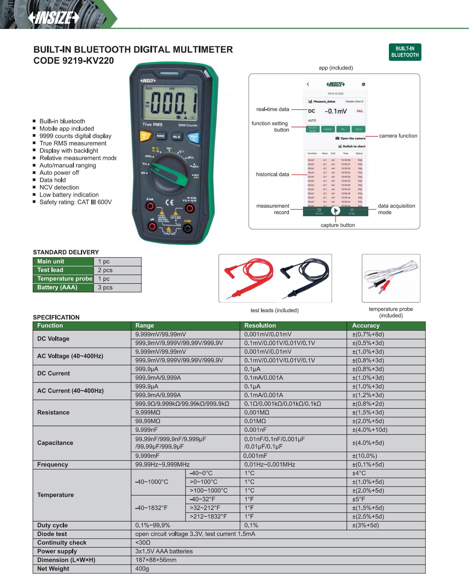 | 9219-KV220 | 4 | 9.999A | 9.999A | 999.9V | 999.9V | ±(0.5%+3d) | yes | yes | bluetooth |
