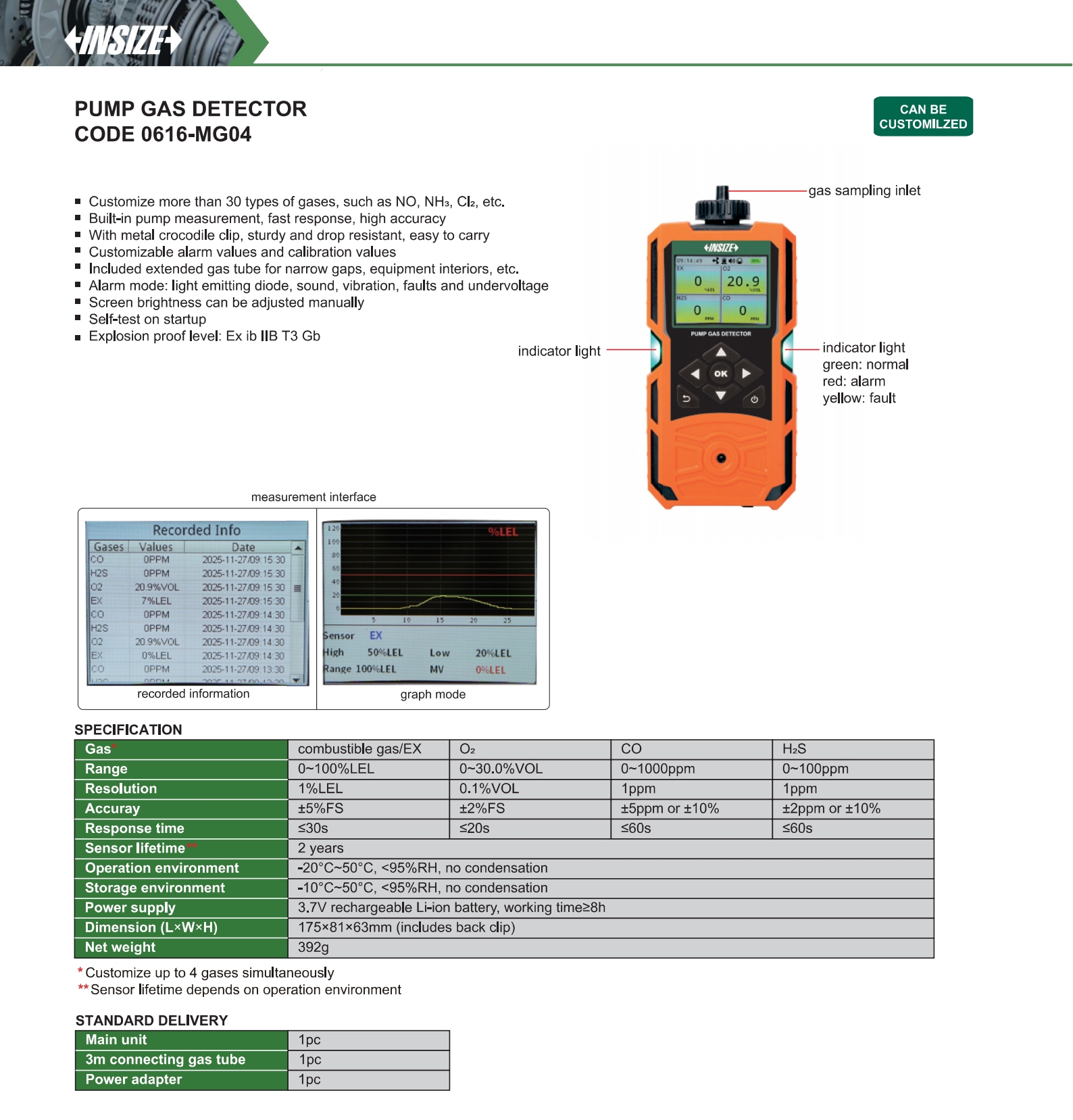 | 0616-MG04 | combustible gas/EX, O₂, CO, H₂S | pump | Multi |