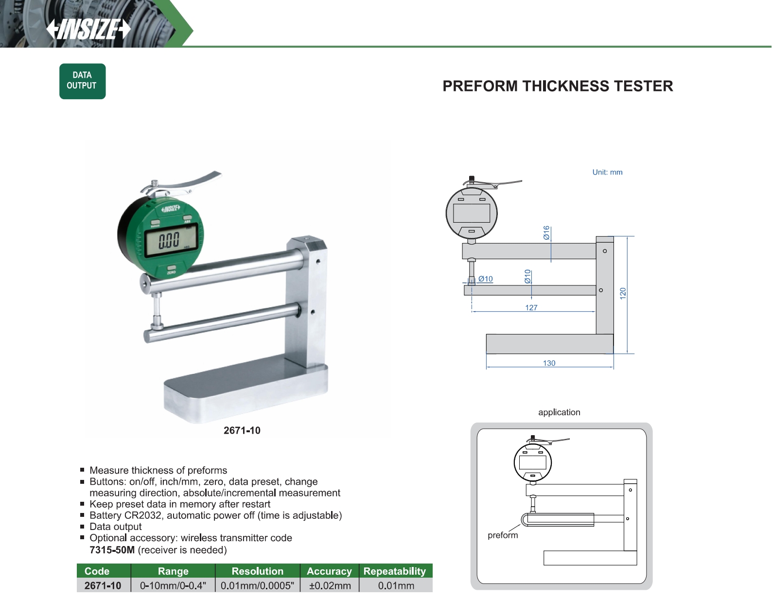 | 2671-10 | 0-10mm/0-0.4" | ±0.02mm | 0.01mm/0.0005" |