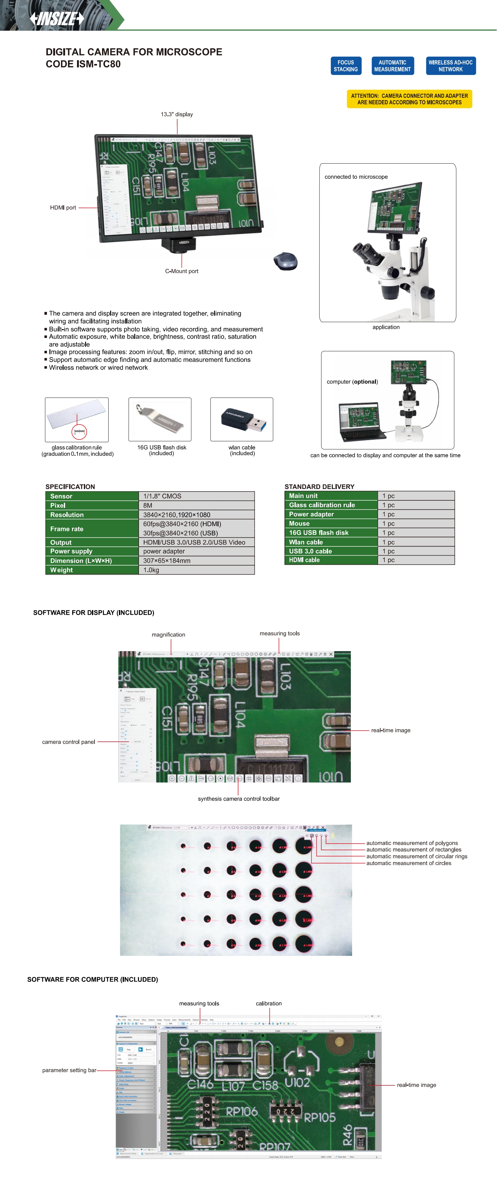 | ISM-TC80 | 1/1.8'' CMOS | 3840×2160,1920×1080 | 8M | 60fps@3840×2160 (HDMI), 30fps@3840×2160 (USB) |