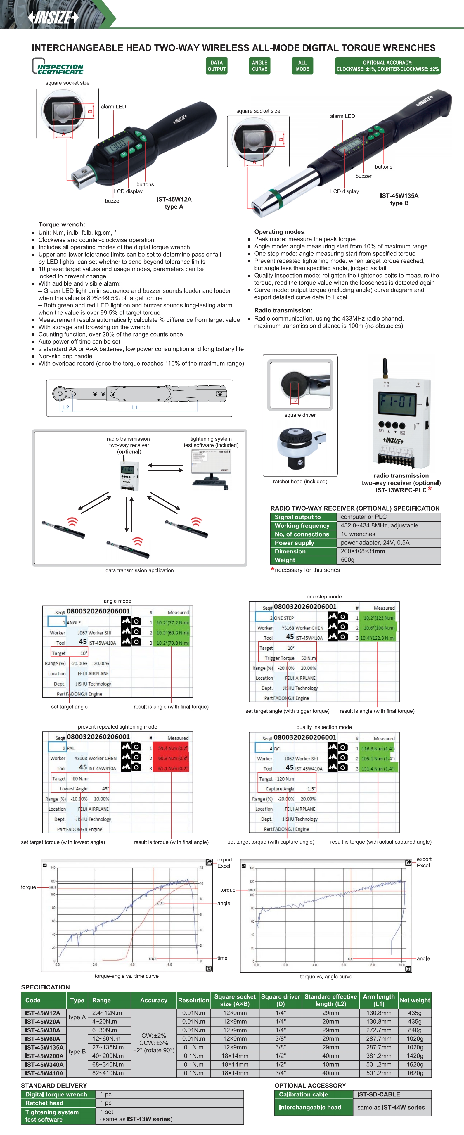 IST-45W20A Digital 4~20N.m Wireless tightening system Digital display Interchangeable head