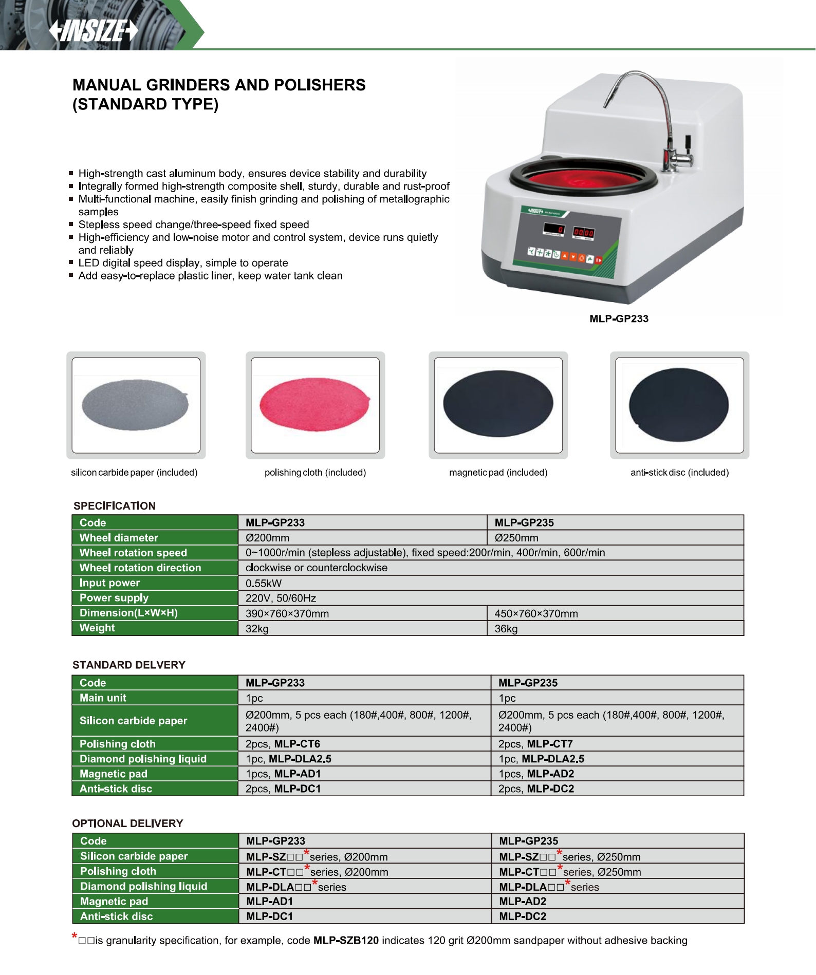 | MLP-GP235 | manual | single | Ø250mm | 0~1000r/min, 200r/min, 400r/min, 600r/min |