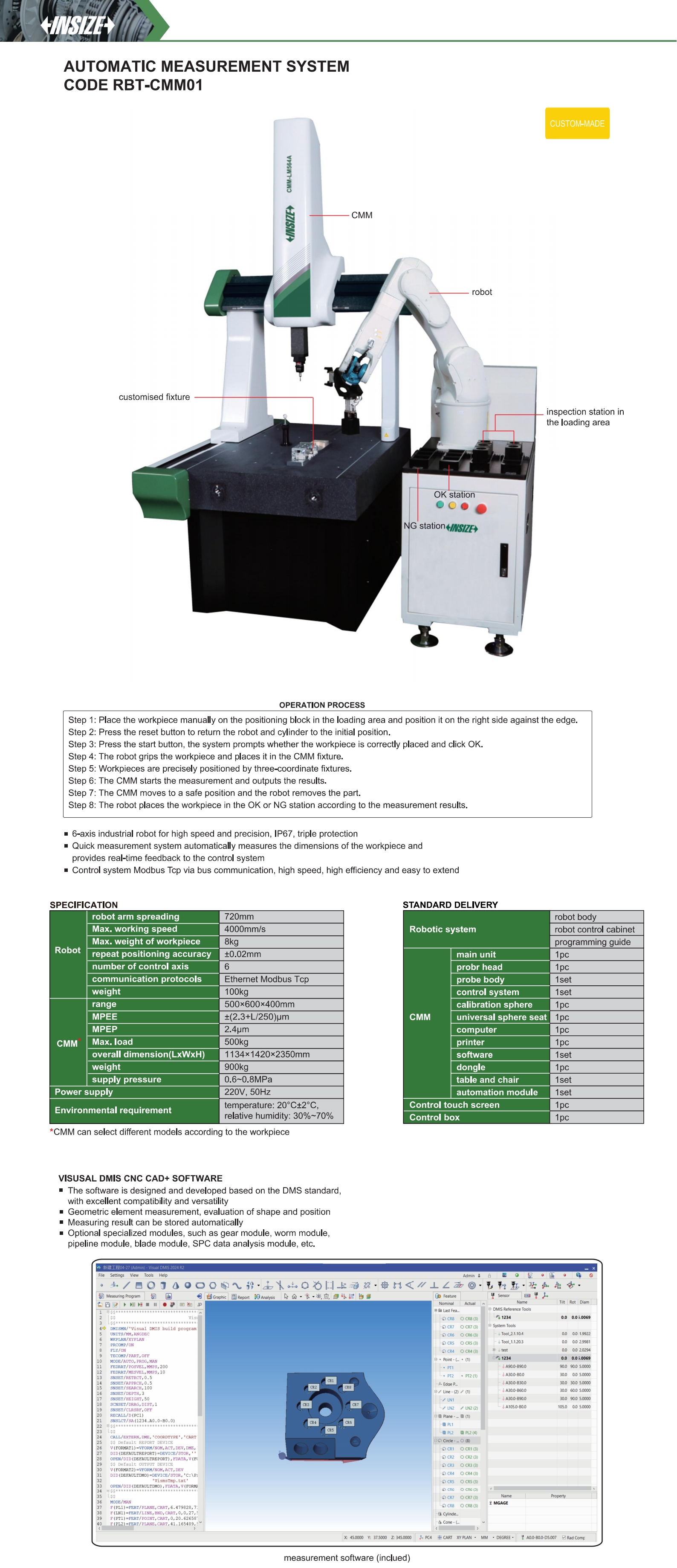 | RBT-CMM01 | Can Be Customized | 500×600×400mm(Can Be Customized) | ±(2.3+L/250)μm(Can Be Customized) | 2.4μm(Can Be Customized) | 0.6~0.8MPa(Can Be Customized) |