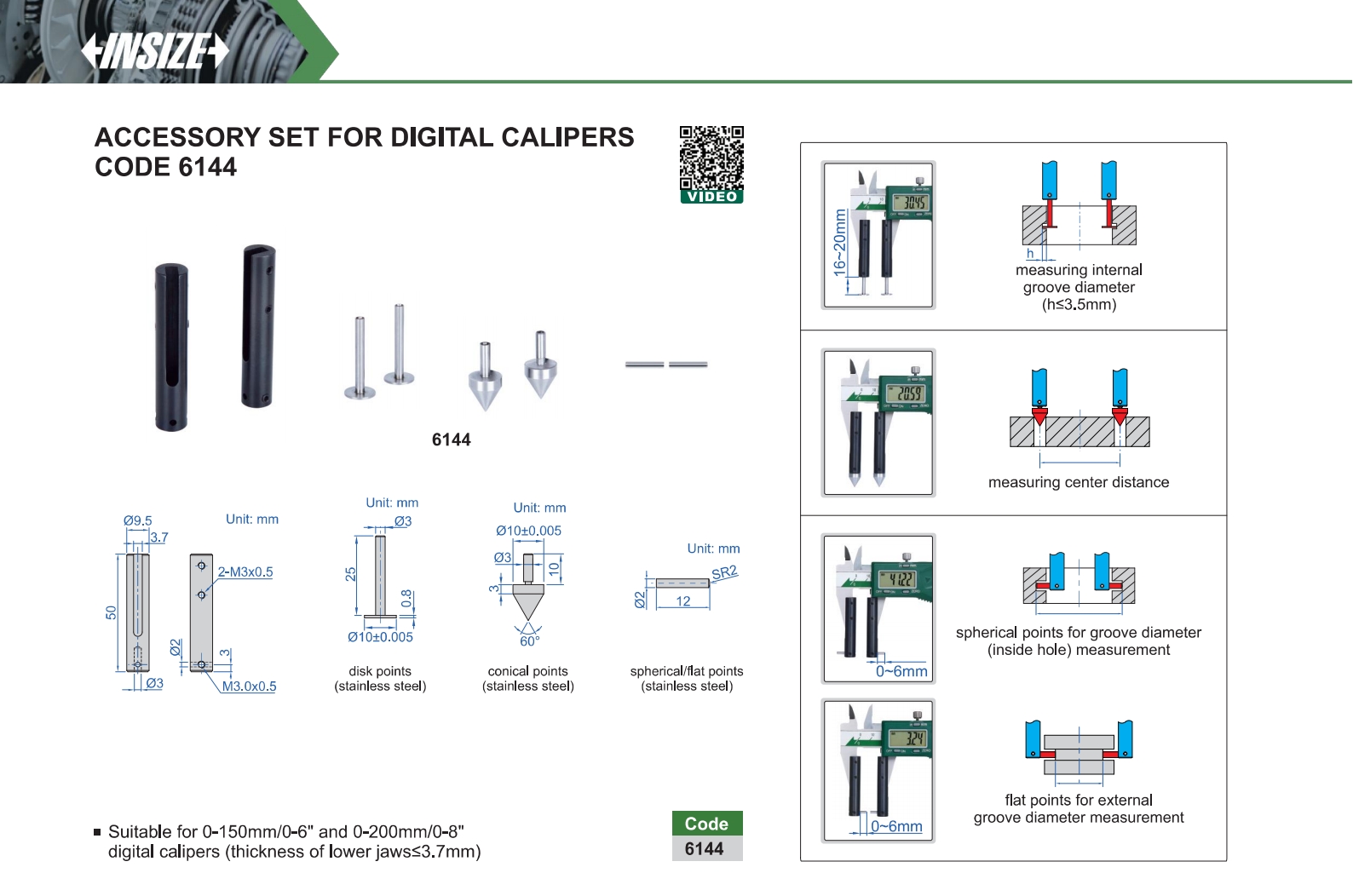 Suitable for 0-150mm/0-6" and 0-200mm/0-8" digital calipers (thickness of lower jaws≤3.7mm)
