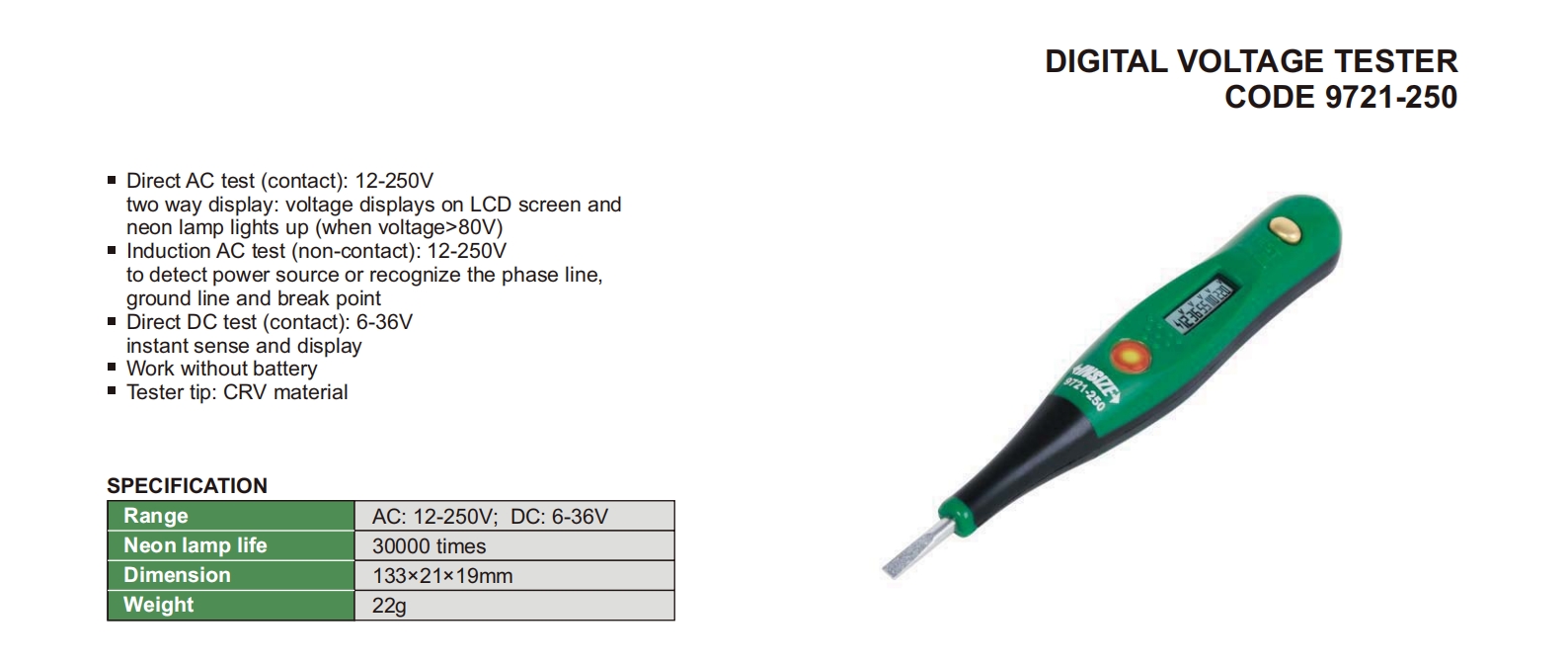 | 9721-250 | Contact | AC: 12-250V; DC: 6-36V |