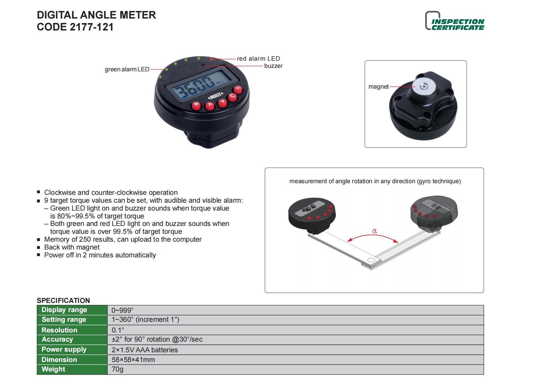 | 2177-121 | ±2° for 90° rotation @30°/sec | 0.1° |