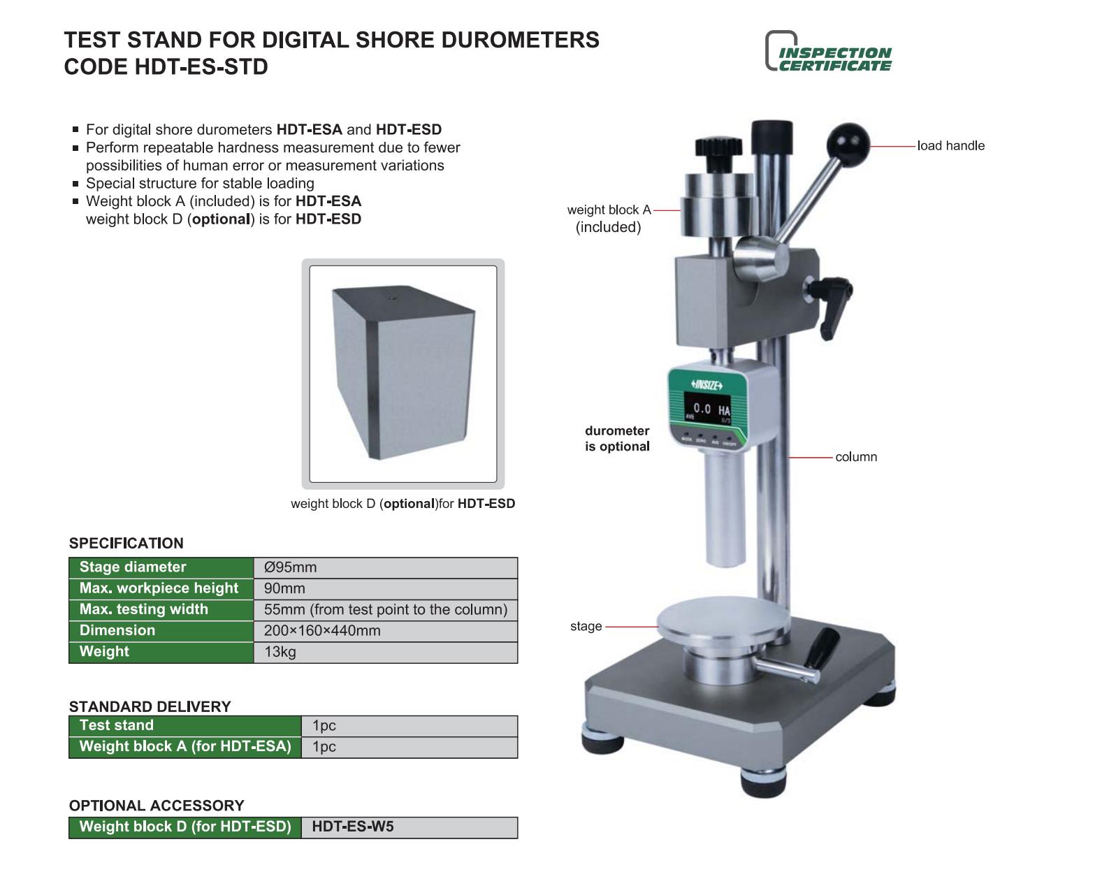For digital shore durometers HDT-ESA and HDT-ESD