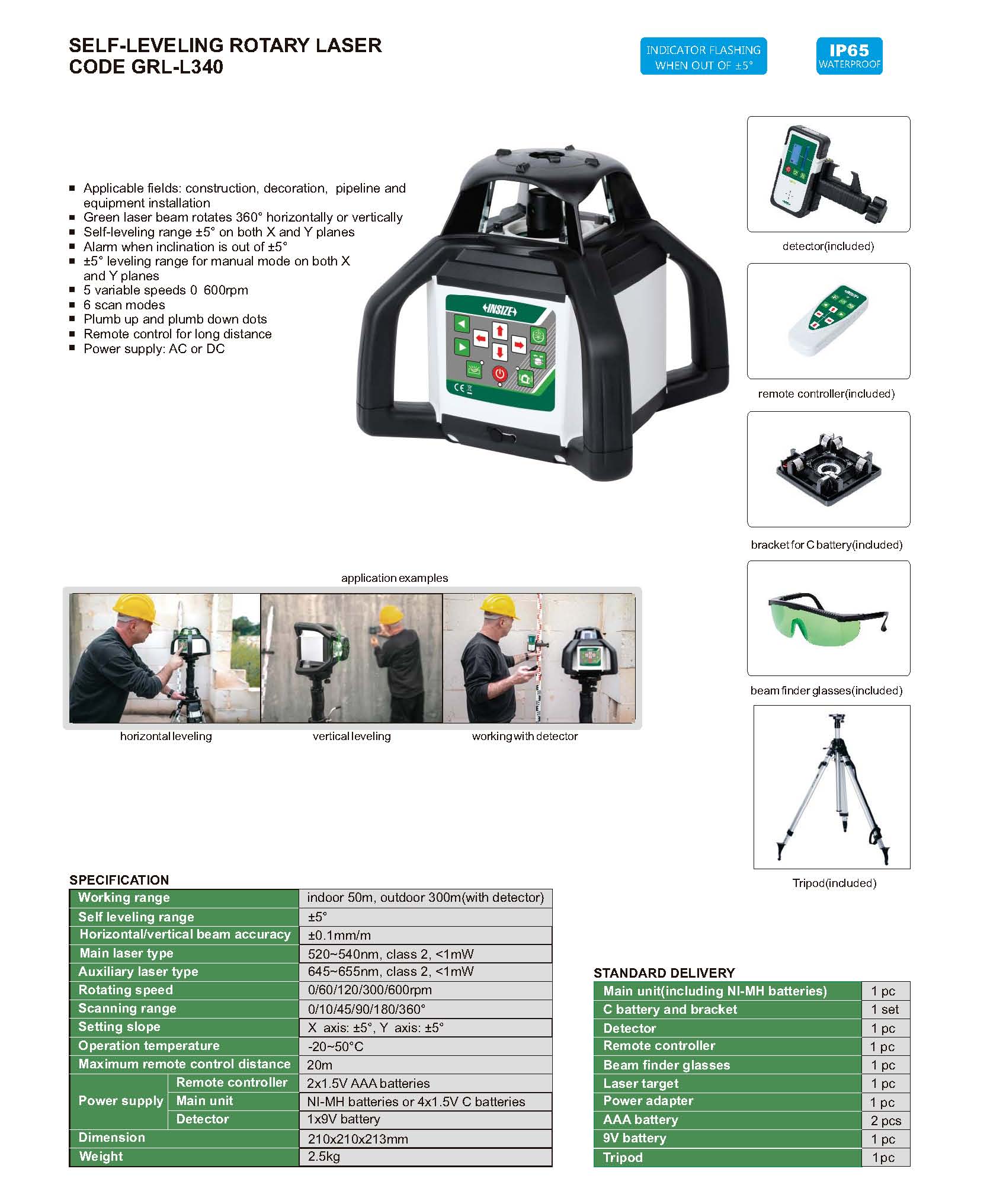| GRL-L340 | ±0.1mm/m | -20~50°C | indoor 50m, outdoor 300m (with detector) | ±5° |