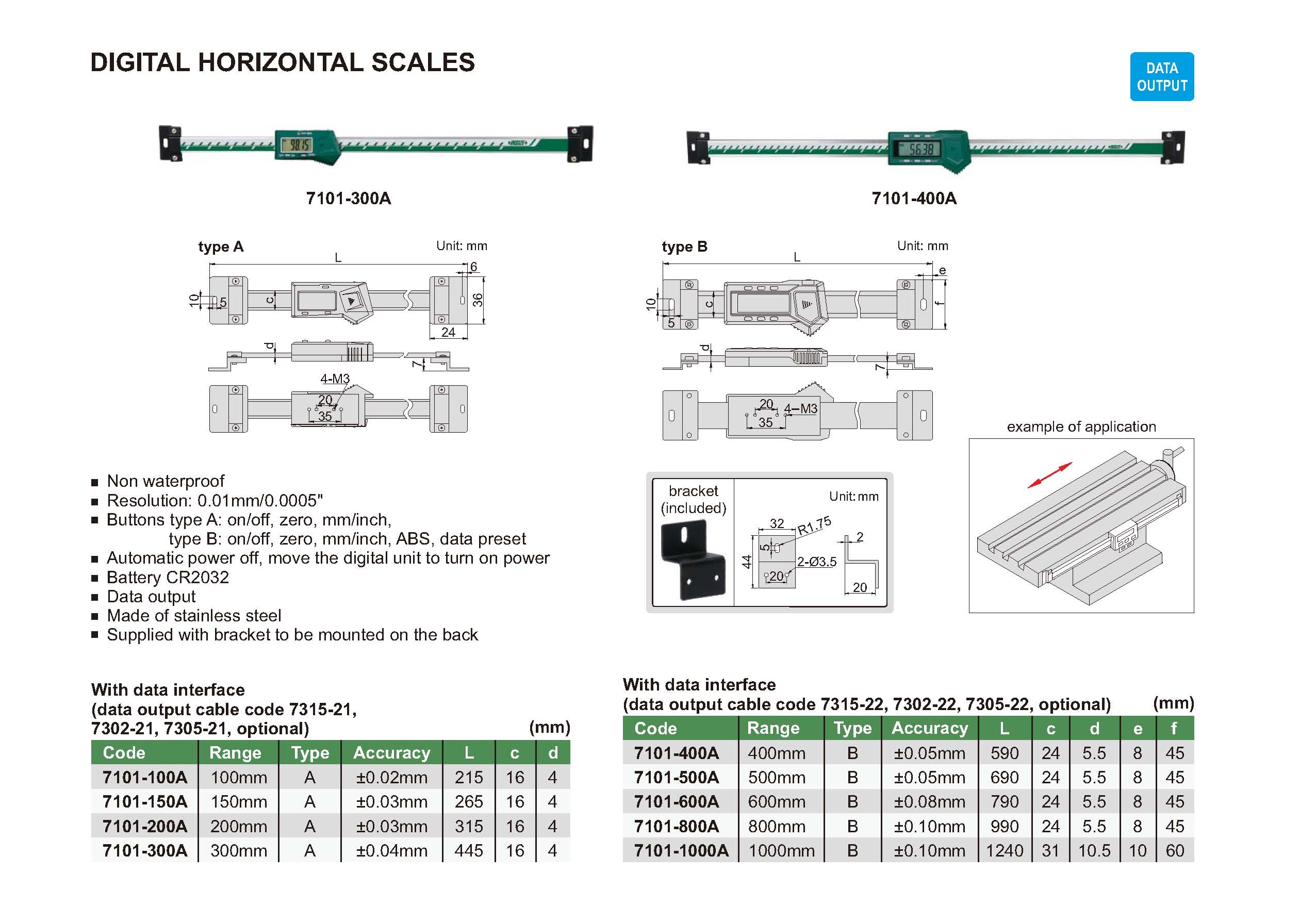 | 7101-1000A | 1000mm | ±0.10mm | 0.01mm/0.0005" |