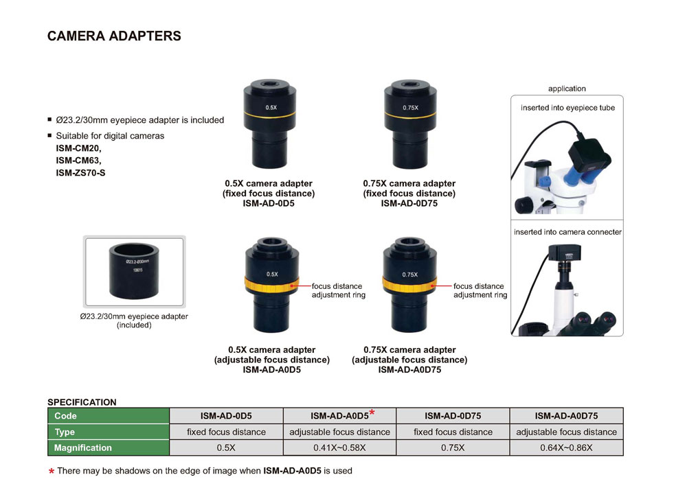 | ISM-AD-A0D75 | adjustable focus distance | 0.64X~0.86X |