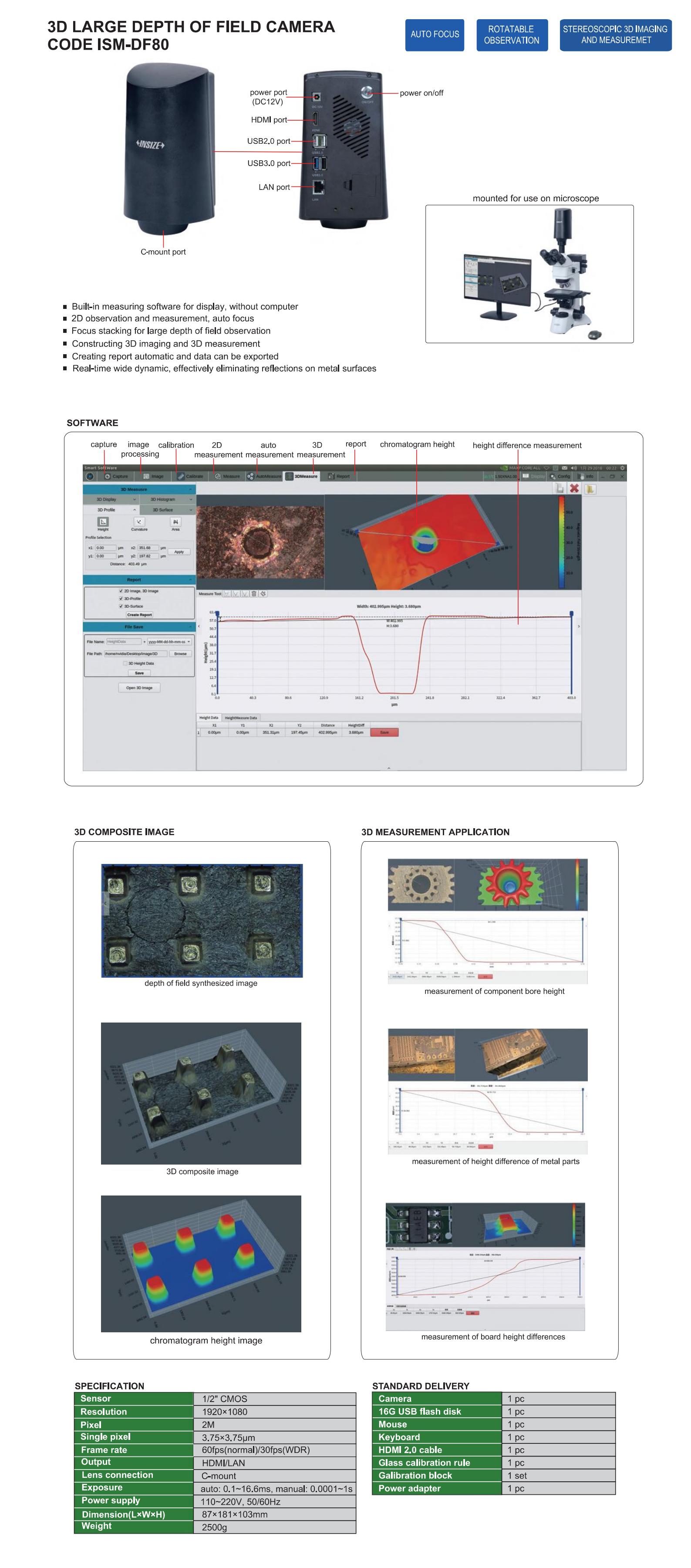 2D observation and measurement, auto focus