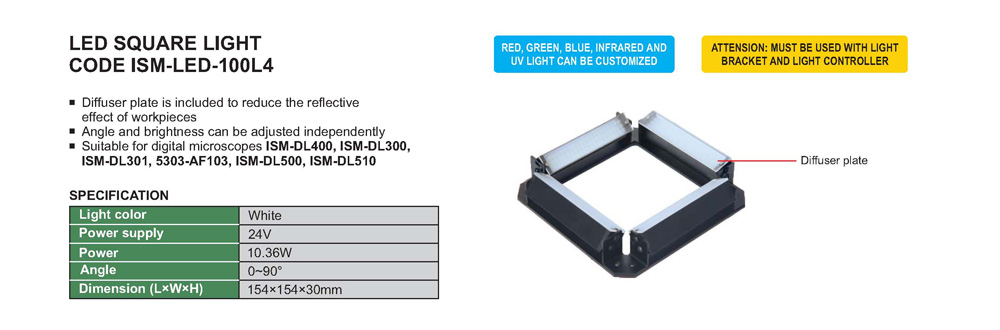 | ISM-LED-100L4 | 0~90° | 10.36W | 24V |