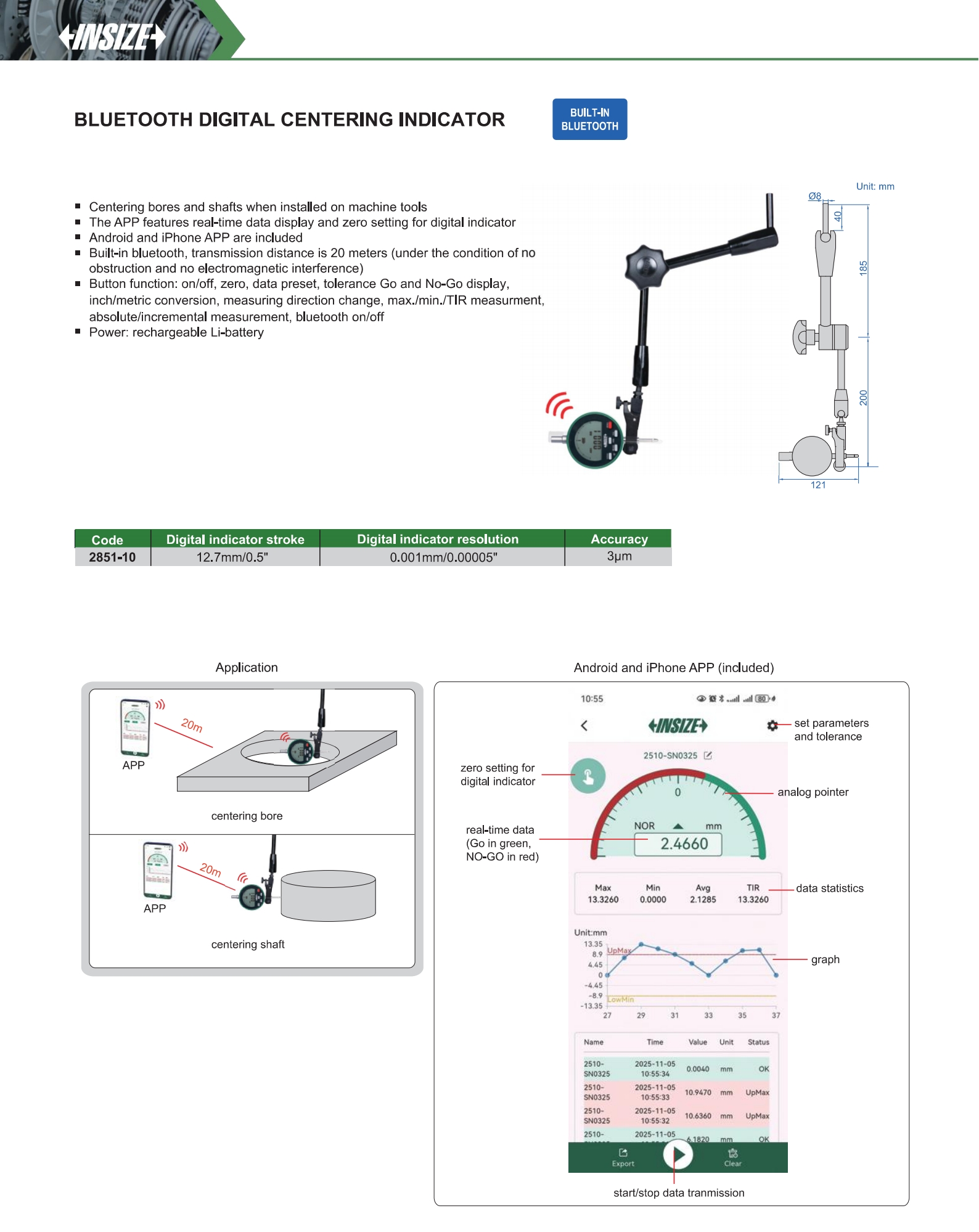 | Code | Accuracy | Resolution | Digital indicator stroke |