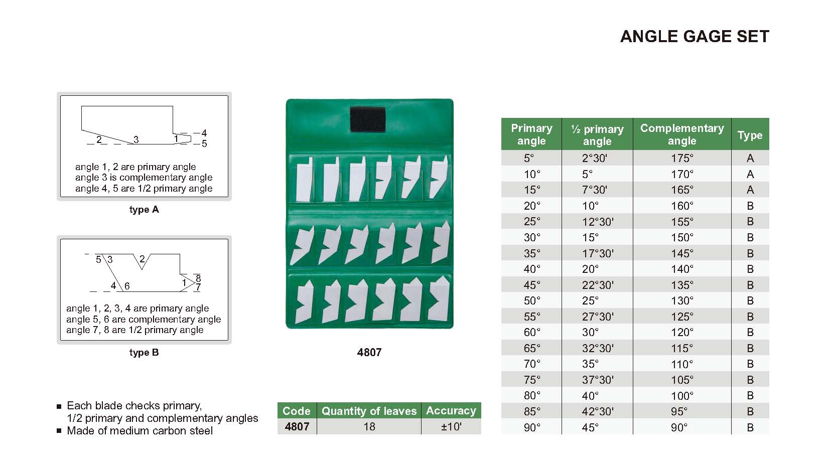 Each blade checks primary, 1/2 primary and complementary angles