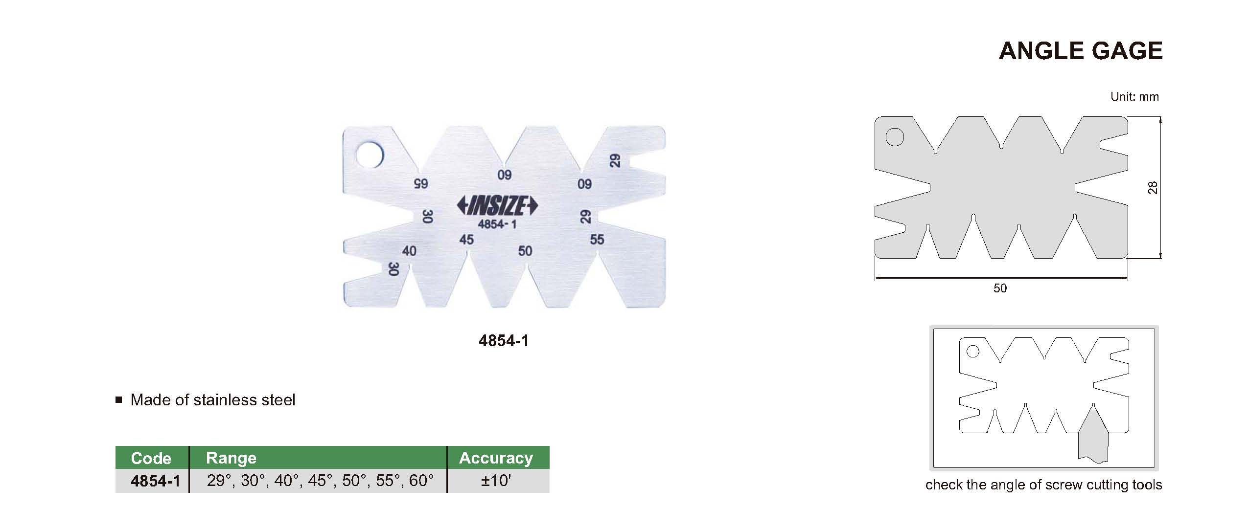 4854-1 29°, 30°, 40°, 45°, 50°, 55°, 60° ±10'